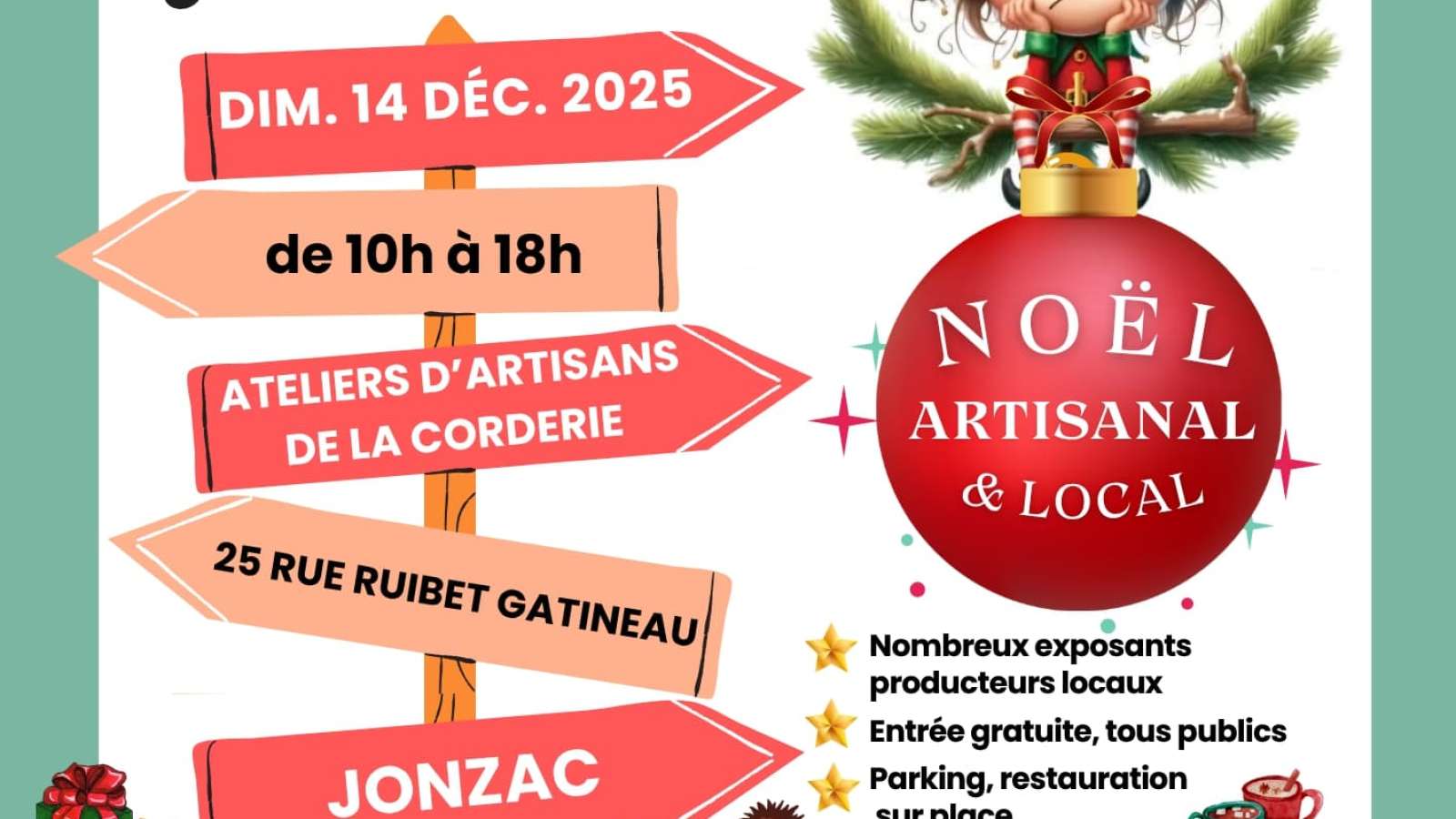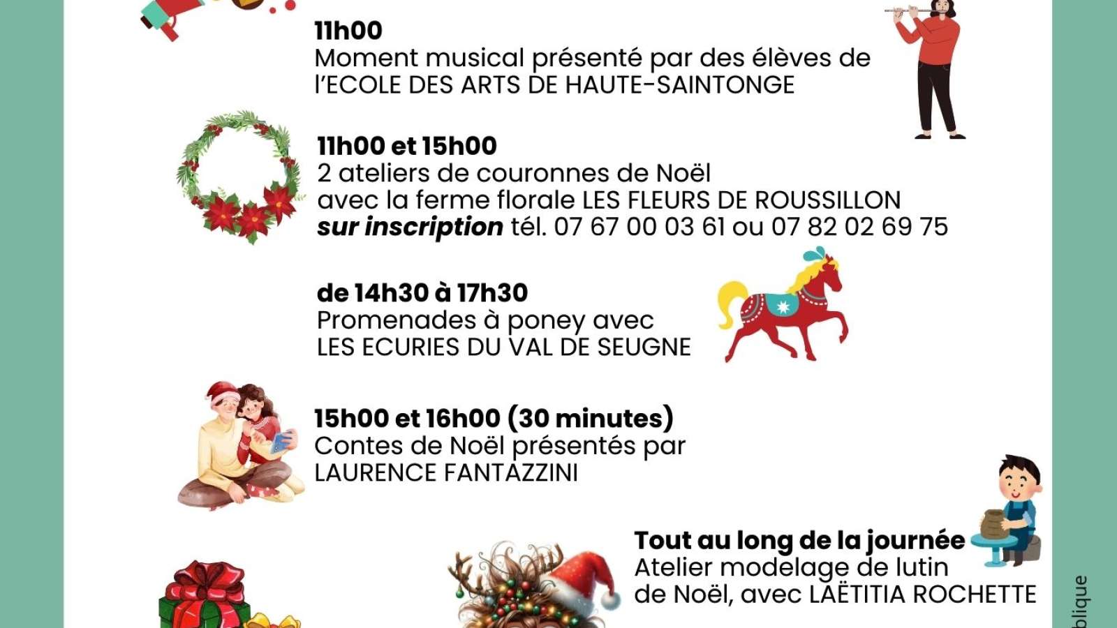 Les artisans des Ateliers de la Corderie vous fêtent noël. Trouver le cadeau original et local, fait à la main et avec amour. De nombreuses animations : promenades à poney, modelage de ton lutin de noël, lecture de contes...