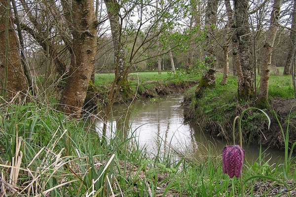 Descendre après le pont sur la droite, continuer vers le nord à la limite des prés (cardamines, fritillaires pintade, reines des prés) pour arriver sur le chemin du "Pas de Georgette " que l'on prend à gauche jusqu'à la route.