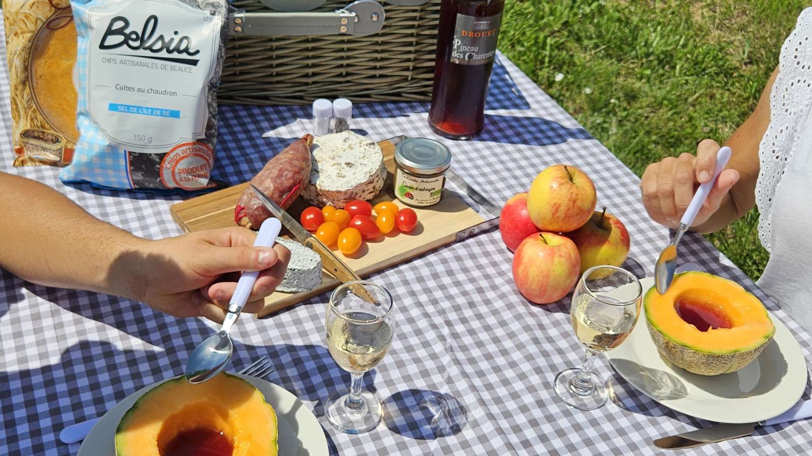 Profitez de la tranquillité et la beauté du paysage charentais, dans son authenticité, tout en dégustant un panier charentais, fraîchement préparé pour vous.