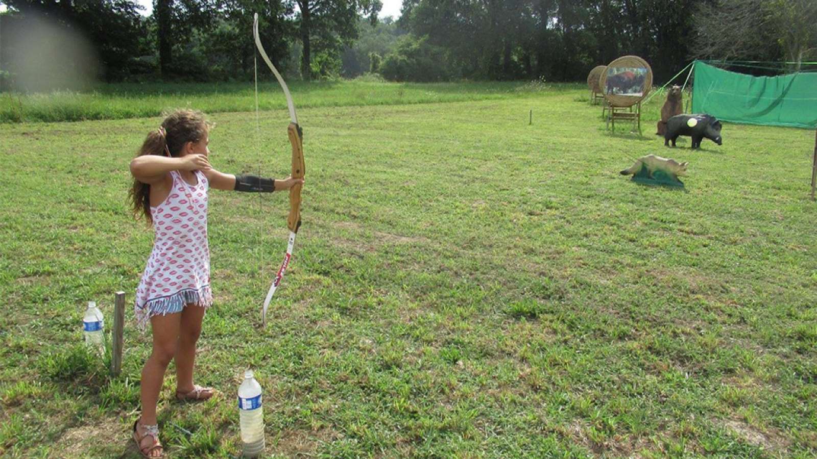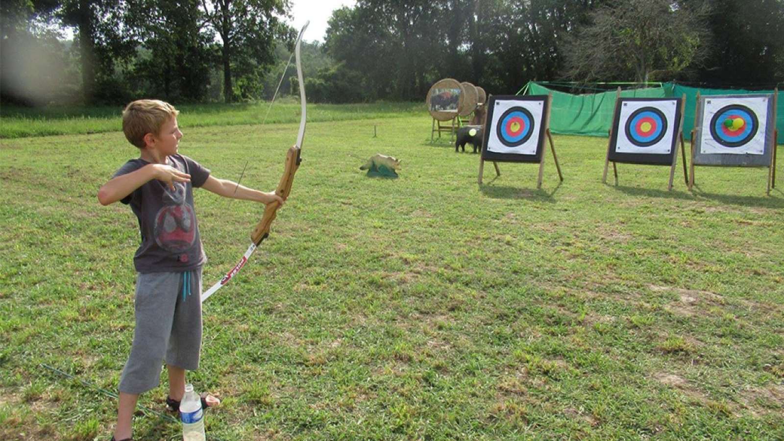 Initiation au tir à l'arc à partir de 5 ans, arc et puissance adapté à l'archer. Distance de tir de 5 à 30m sur cibles en mousse fixe ou courante, un vrai jeu d'aventurier ! Tir au drapeau : tirer des flèches sur une grande distance, jusqu'à 100m et les mettre le plus proche d'un repère. Archery tag : cela s'apparente au paintball avec des arcs et des flèches. Un moyen unique et amusant de profiter du tir à l'arc. Sport d'adresse, ludique et non violent, à partir de 10 ans. Un jeu sportif à faire en famille ou entre amis !
