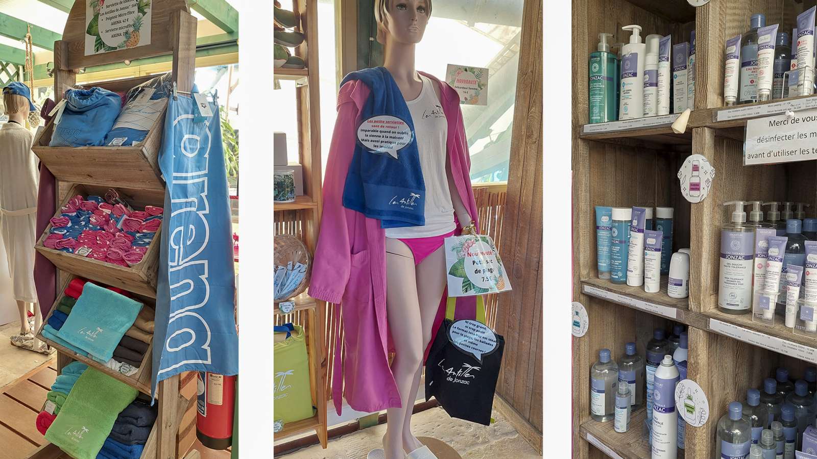 Besoin de vous équiper pour une journée détente ou baignade ? Direction la boutique des Antilles de Jonzac ! Ouverte 7j/7, elle propose un large choix d'articles pour petits et grands, parfaits pour profiter pleinement de votre moment. Pour la baignade, vous trouverez tout ce qu’il vous faut : bouées, brassards, maillots et shorts de bain, lunettes, frites, ballons de piscine... Envie de rapporter un souvenir ? La boutique propose aussi des casquettes, tee-shirts, gobelets, magnets, et serviettes, pour garder un peu des Antilles avec vous. Et pour une touche de bien-être, découvrez une belle sélection de produits de beauté bio, disponibles à l’unité ou en coffret cadeau, idéals pour se faire plaisir ou offrir.