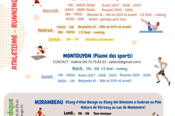 Vous êtes nés en 2019 et avant et vous souhaitez faire de l'athlétisme, du running, du trail, de la marche nordique, participer aux diverses compétitions, rejoignez-nous.