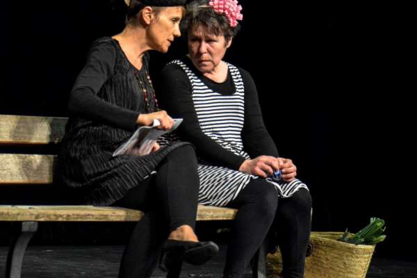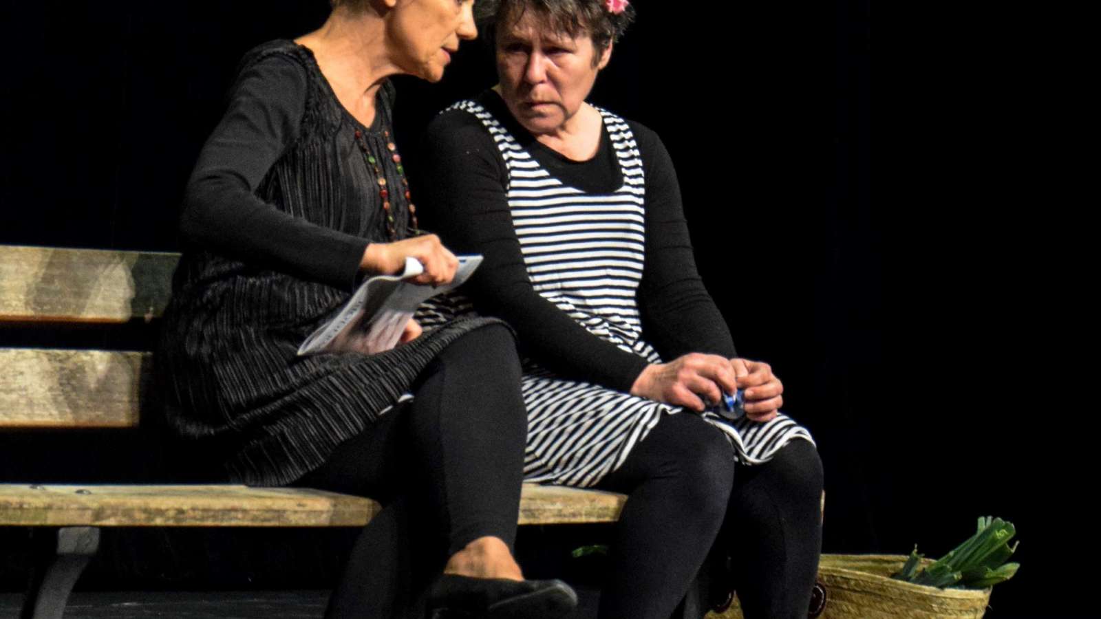 Ce spectacle met en scène deux vieilles femmes assises, côte à côte. Elles attendent un visiteur, se souviennent et échangent avec humour d’un temps révolu qui ressemble furieusement au nôtre. Il est question des femmes, de leurs rides et de leurs rires, mais aussi de la vie, celle qu’on a et celle dont on rêve, de violence et d’écologie et…de blattes !