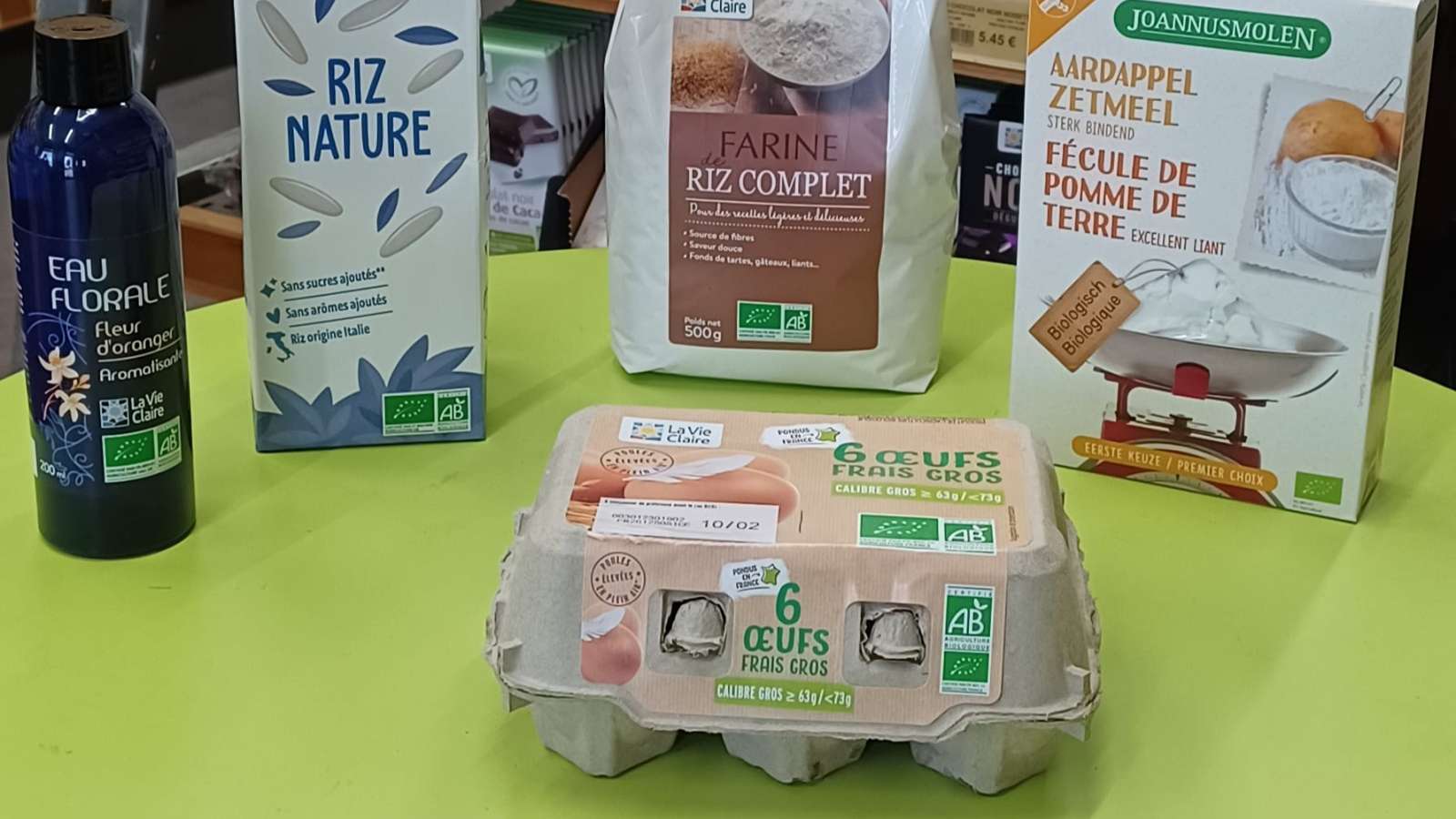 Dans votre magasin Bio vous trouverez une épicerie, fruits et légumes, pains cuits à la demande, pains sans gluten, rayon frais, produits d'entretien, d'hygiène et un peu de cosmétique !