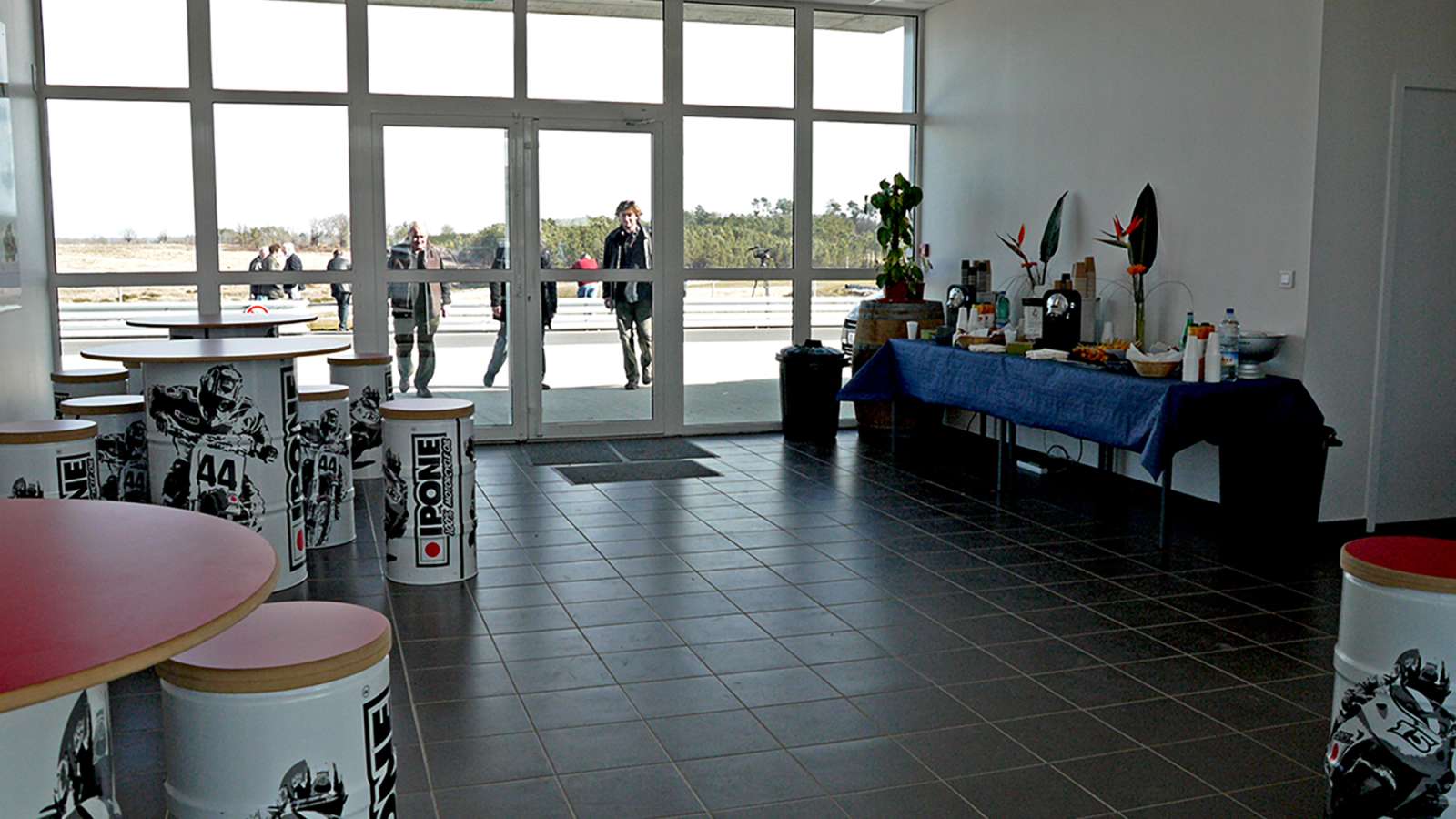"La Grand Font" sert de bâtiment d’accueil, idéalement situé entre les deux circuits. Différentes salles modulables permettent la réalisation de briefings, de cours théoriques de conduite, de réunions ou de séminaires.