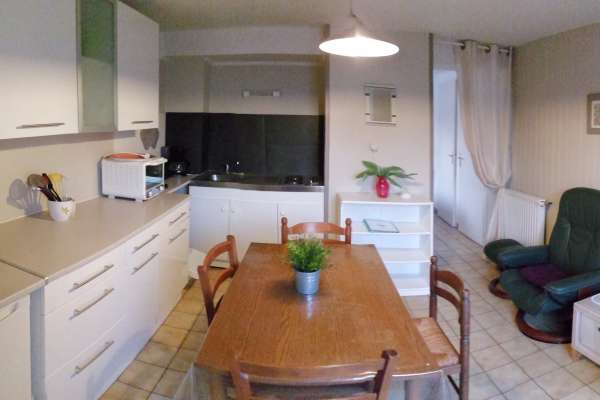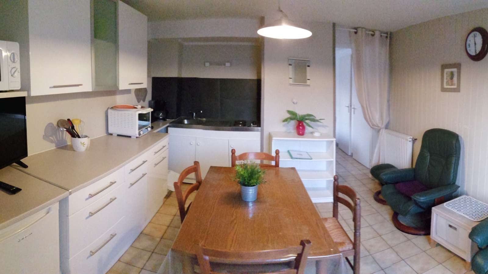 Appartement au rez-de-chaussée situé à 50m des Thermes Situé à 500m du centre-ville et à proximité du centre aqualudique des "Antilles de Jonzac", comprenant un coin cuisine équipé, une chambre avec un lit de 140 et accès Wifi. Linge literie et toilettes fournis. Laverie en commun : lave-linge et sèche-linge avec supplément.