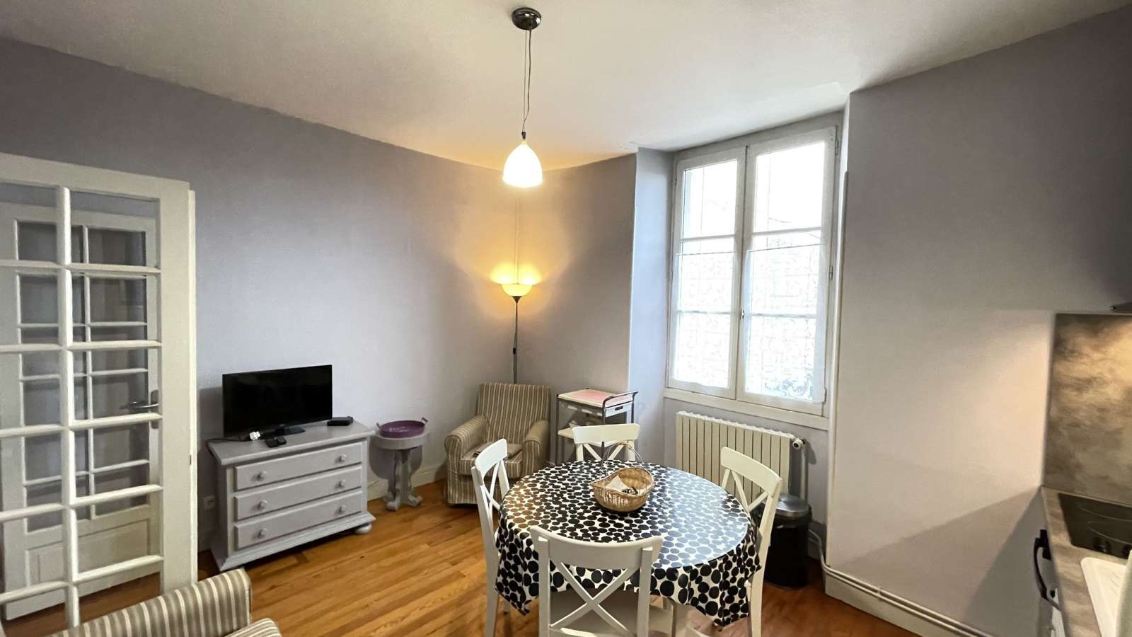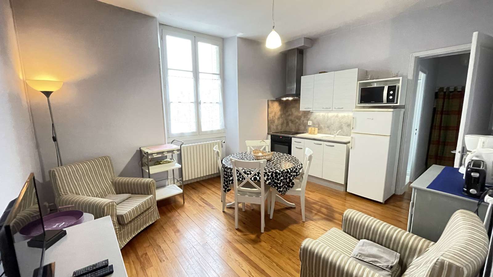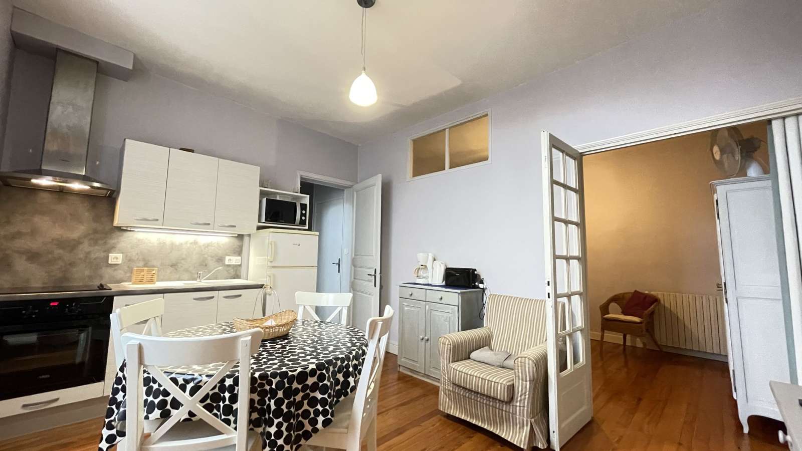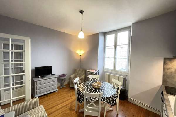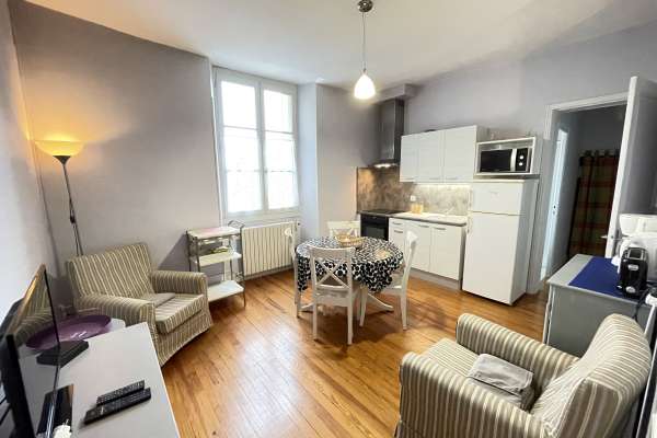 Appartement à l'étage situé en centre-ville, au cœur des commodités et des commerces de Jonzac Situé à 1,5km du centre aqualudique des "Antilles de Jonzac" et des Thermes, comprenant une cuisine équipée avec entre autres un micro-ondes, un four, une hotte, une cafetière, un salon avec une télévision, fauteuils, une chambre avec un lit de 140, salle d'eau et WC séparé.