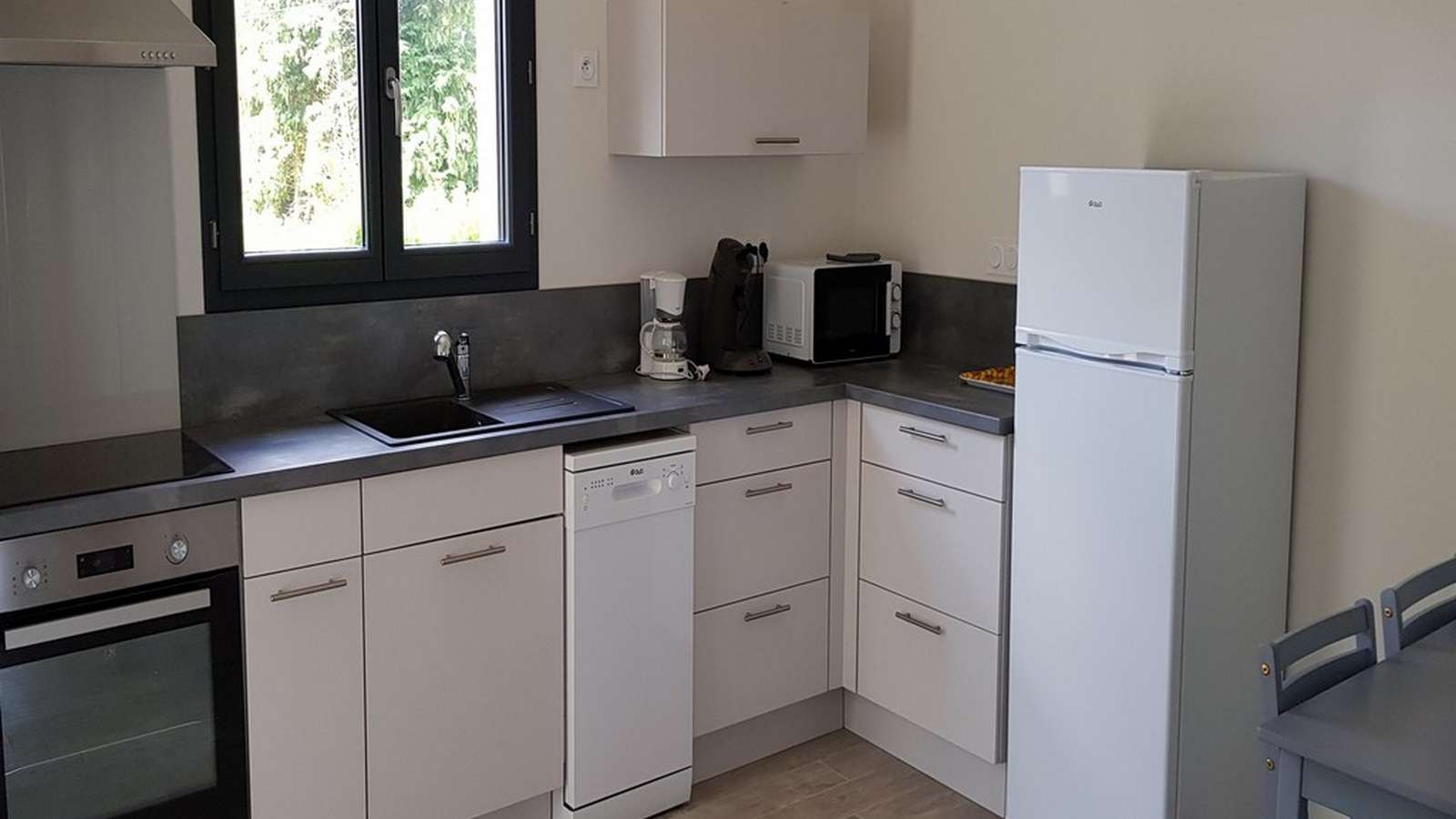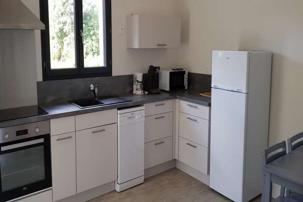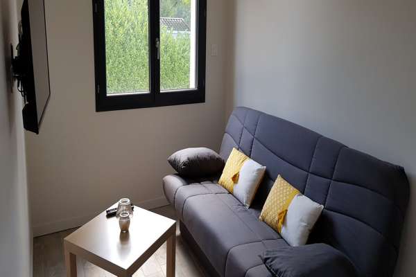 Agréable location de construction neuve tout confort. Plain pied lumineux de 40m2 au cœur d'un terrain clos et calme de 1800m2. Hors résidence avec parking privatif. A proximité de toutes commodités. a moins de 2kms des thermes. Le meublé est composé d'une chambre à coucher avec un lit de 140, literie neuve de marque Epéda et grand placard intégré, d'une cuisine ouverte entièrement équipée(réfrigérateur/congélateur, lave-vaisselle, lave-linge, grand four, micro-onde...) et de nombreux rangements, séjour donnant sur une terrasse couverte avec salon de jardin orientée sud SANS VIS A VIS, coin salon équipé d'un canapé clic-clac convertible, TV écran plat, chauffage avec climatisation réversible, WIFI INCLUS, salle d'eau avec grande douche à l'italienne 2mX1m, sèche serviette et de nombreux rangements. Le tout avec une décoration moderne et épurée. LES PLUS: un adoucisseur d'eau, un composteur et un local technique pour ranger les vélos. A disposition: barbecue, fil à linge, transat... Situé à 1,8km des thermes, à 1km du centre commercial avec une boulangerie, une pharmacie, une station service.