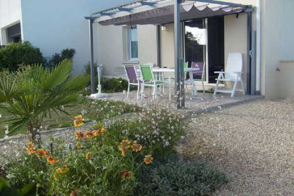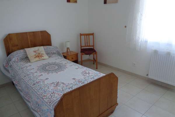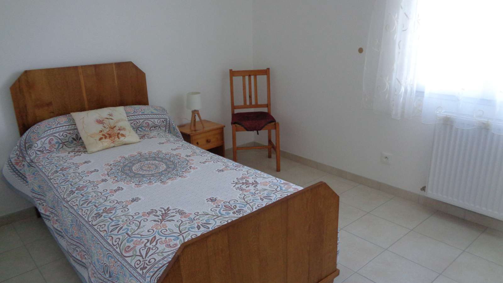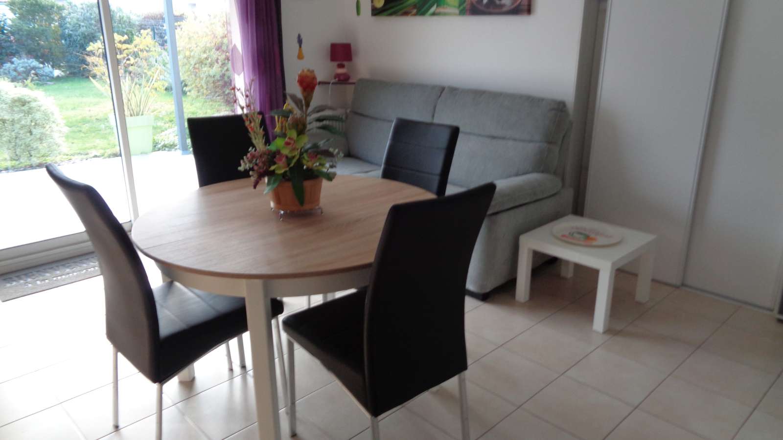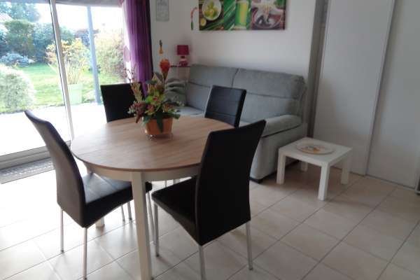 Maison de plain-pied au rez-de-chaussée située à proximité du centre-ville Comprenant une cuisine équipée avec entre autres un four, un micro-ondes, un grille-pain, une cafetière, un lave-vaisselle, un séjour avec télévision, deux chambres l'une avec un lit de 140, l'autre avec un lit de 90. À l'extérieur, un jardin avec terrasse, un parking et un garage.