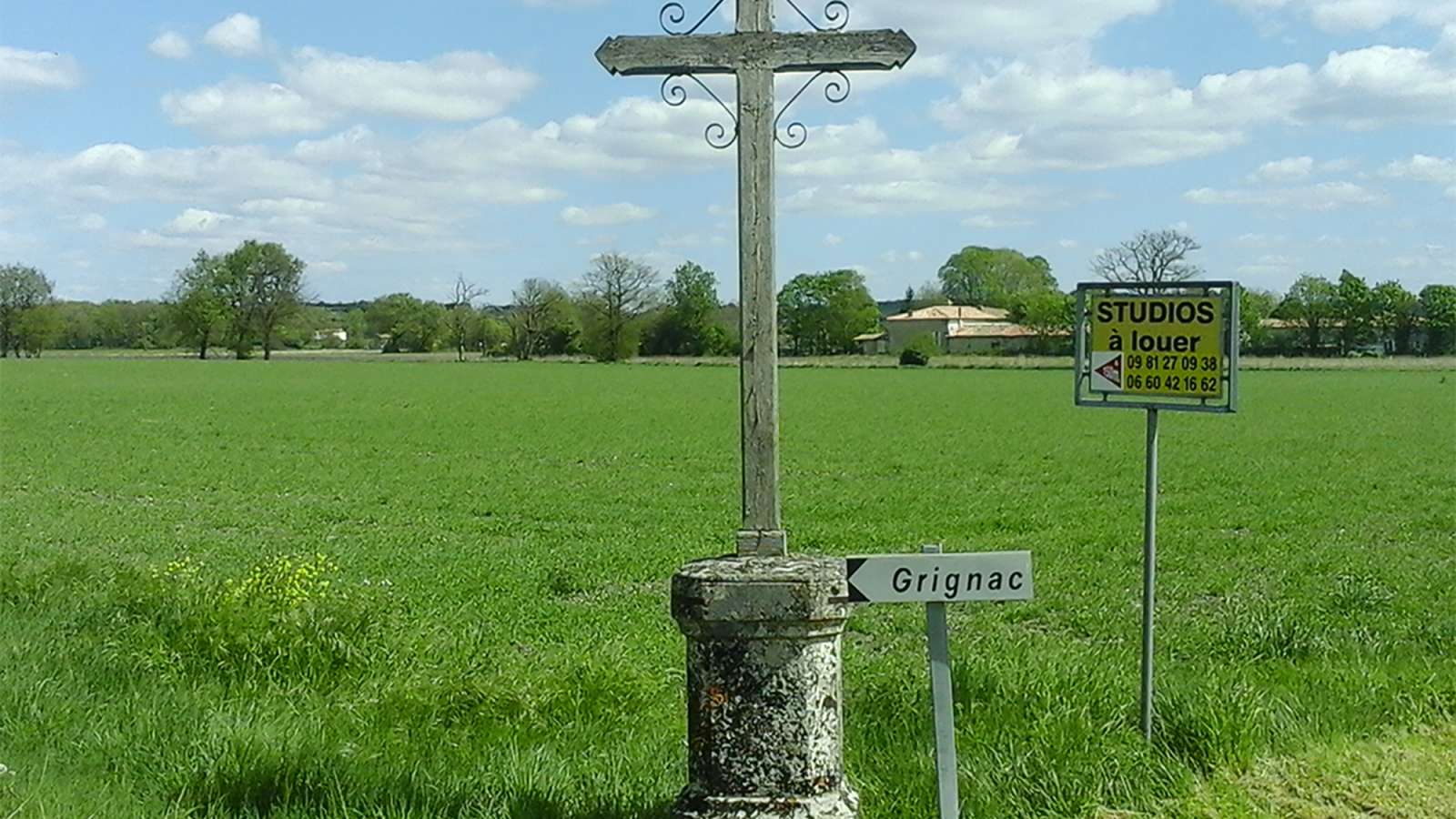 Après Grignac, la D142 à droite sur 250m puis prendre un chemin blanc à gauche qui longe le marais de la Seugne.