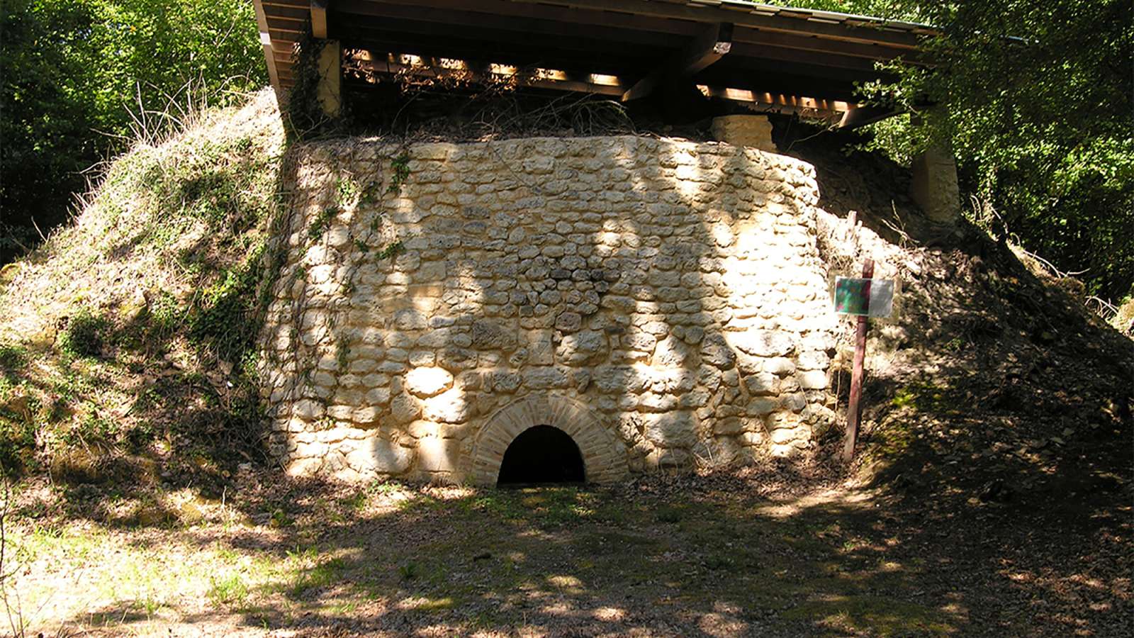 Partir direction Ouest, dans la forêt en parallèle de la route. Au carrefour des chemins, continuer tout droit. À l'embranchement suivant, monter à droite dans le bois.