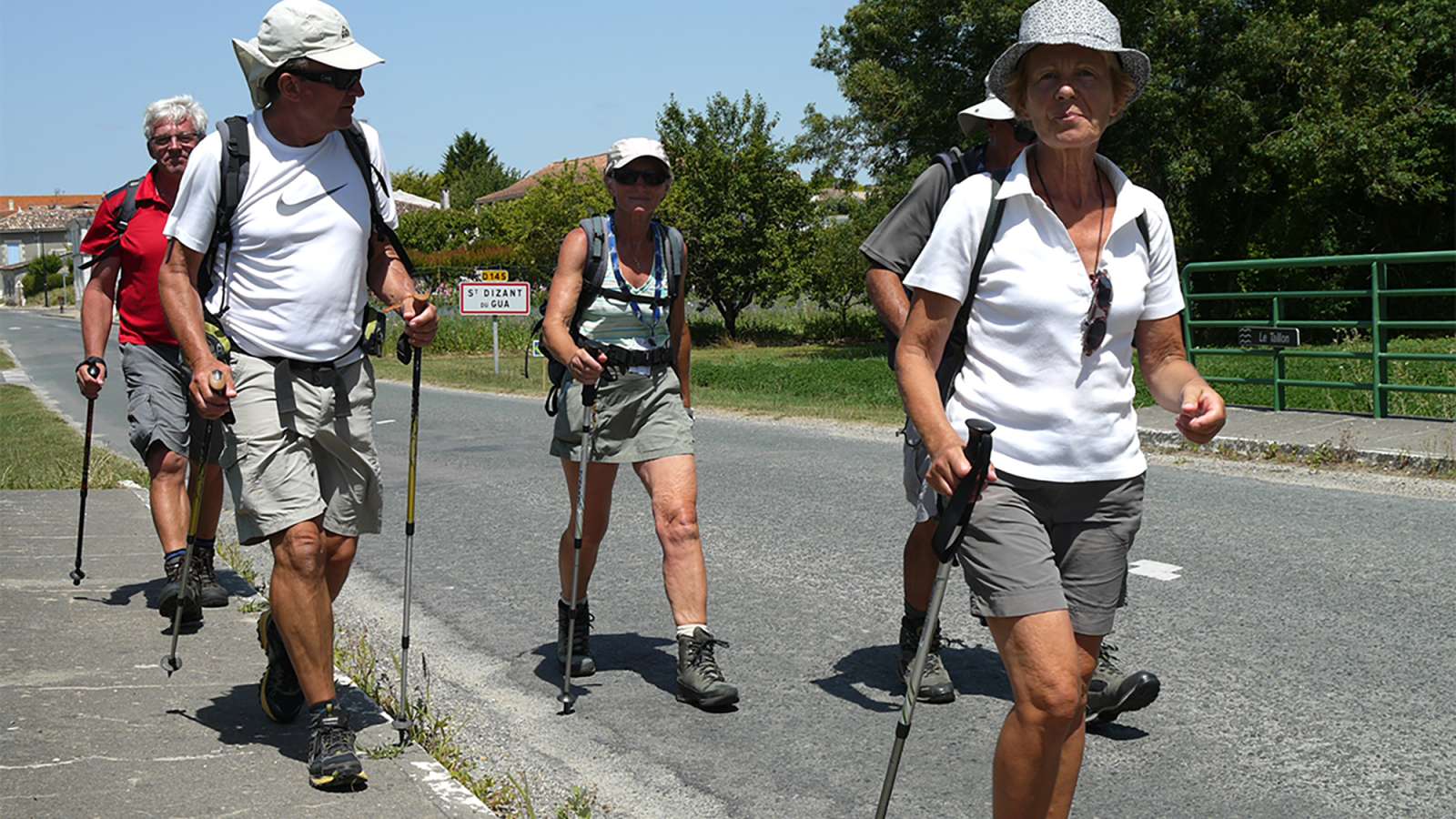 Traverser Le Sap, au carrefour, remonter à droite entre les vignes et 500m plus loin, attraper le chemin qui bifurque à gauche et rejoint le chemin vers St-Dizant-du-Gua.