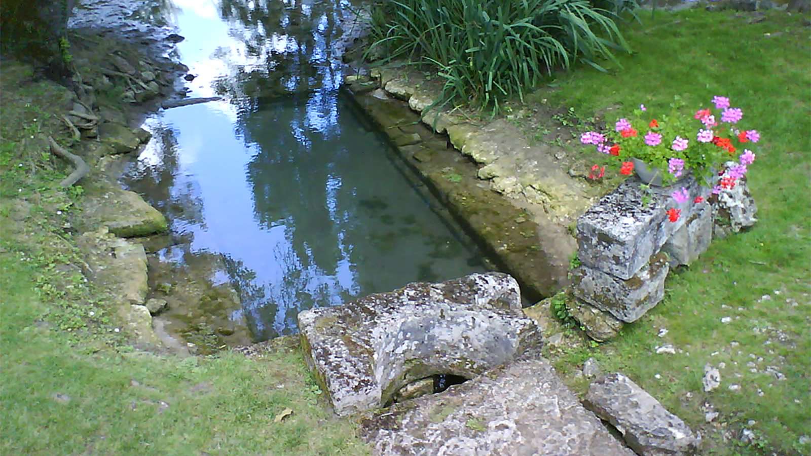 En contrebas, l'eau de la source St-Fort sort directement de la roche, puis est contenue dans un bassin en pierre qui servait autrefois de lavoir et s'écoule enfin en direction de la Seugne par un petit étang. Dans la roche, non loin de la source, vous pourrez aussi admirer un ancien four à pain.