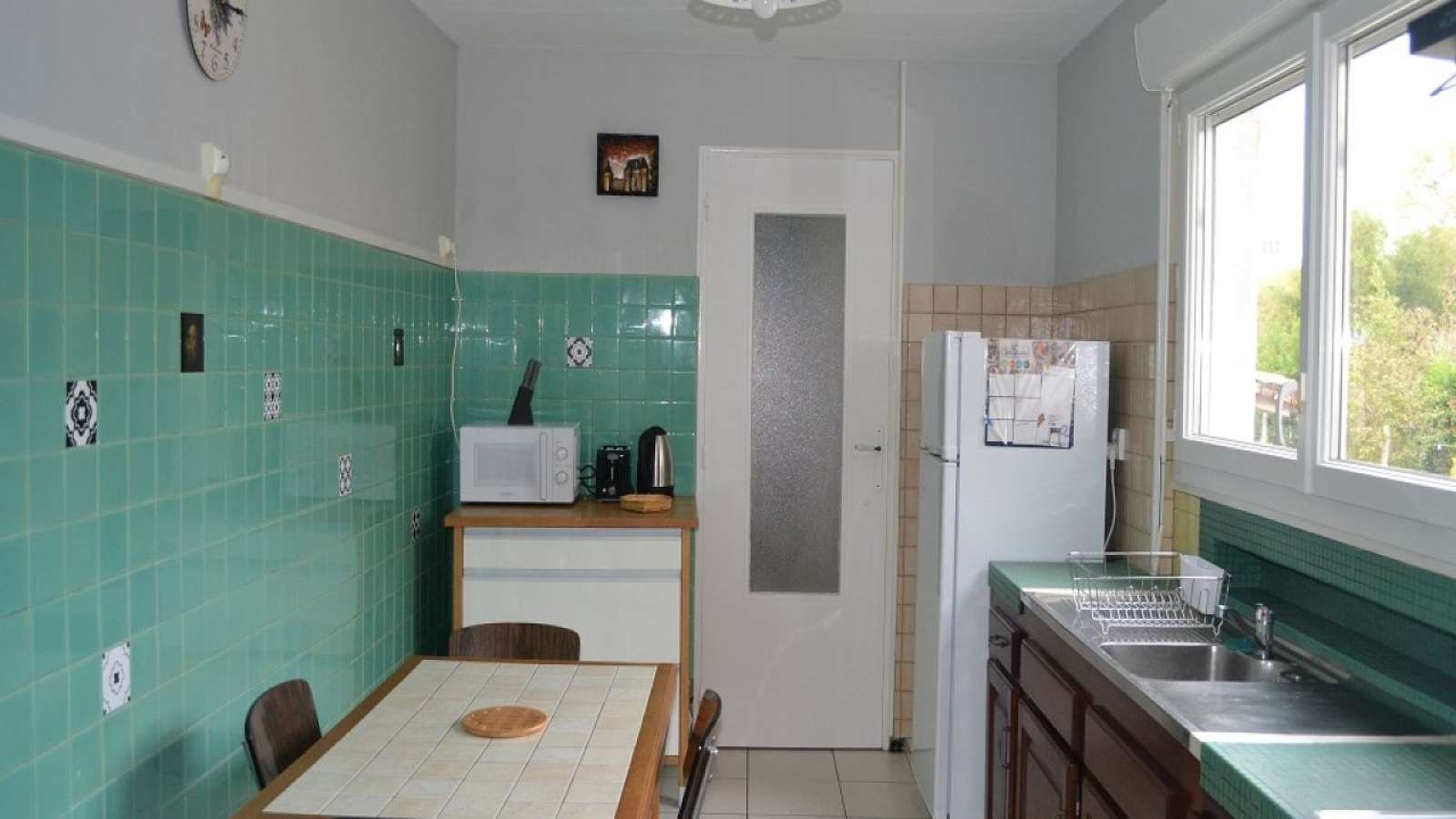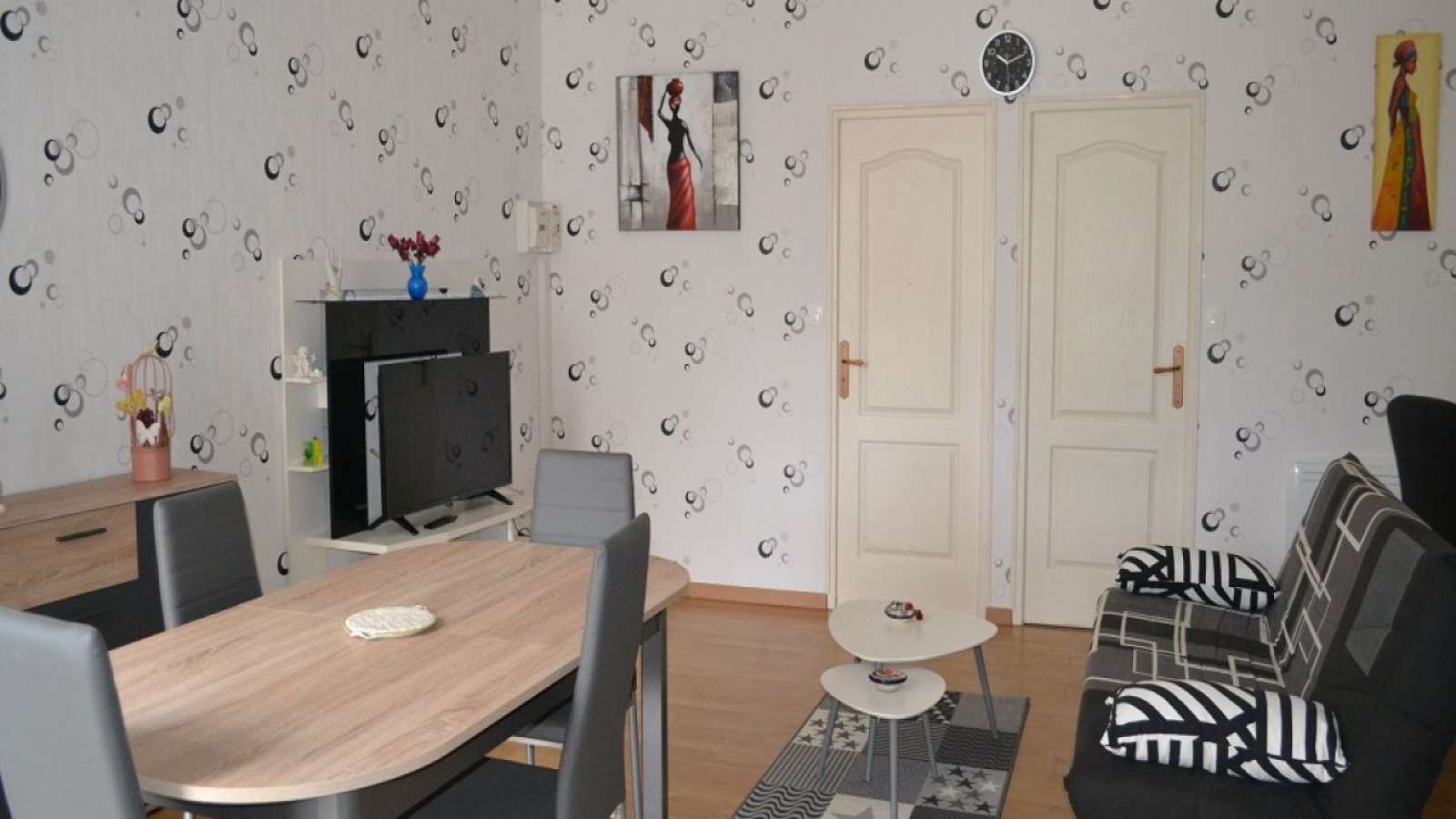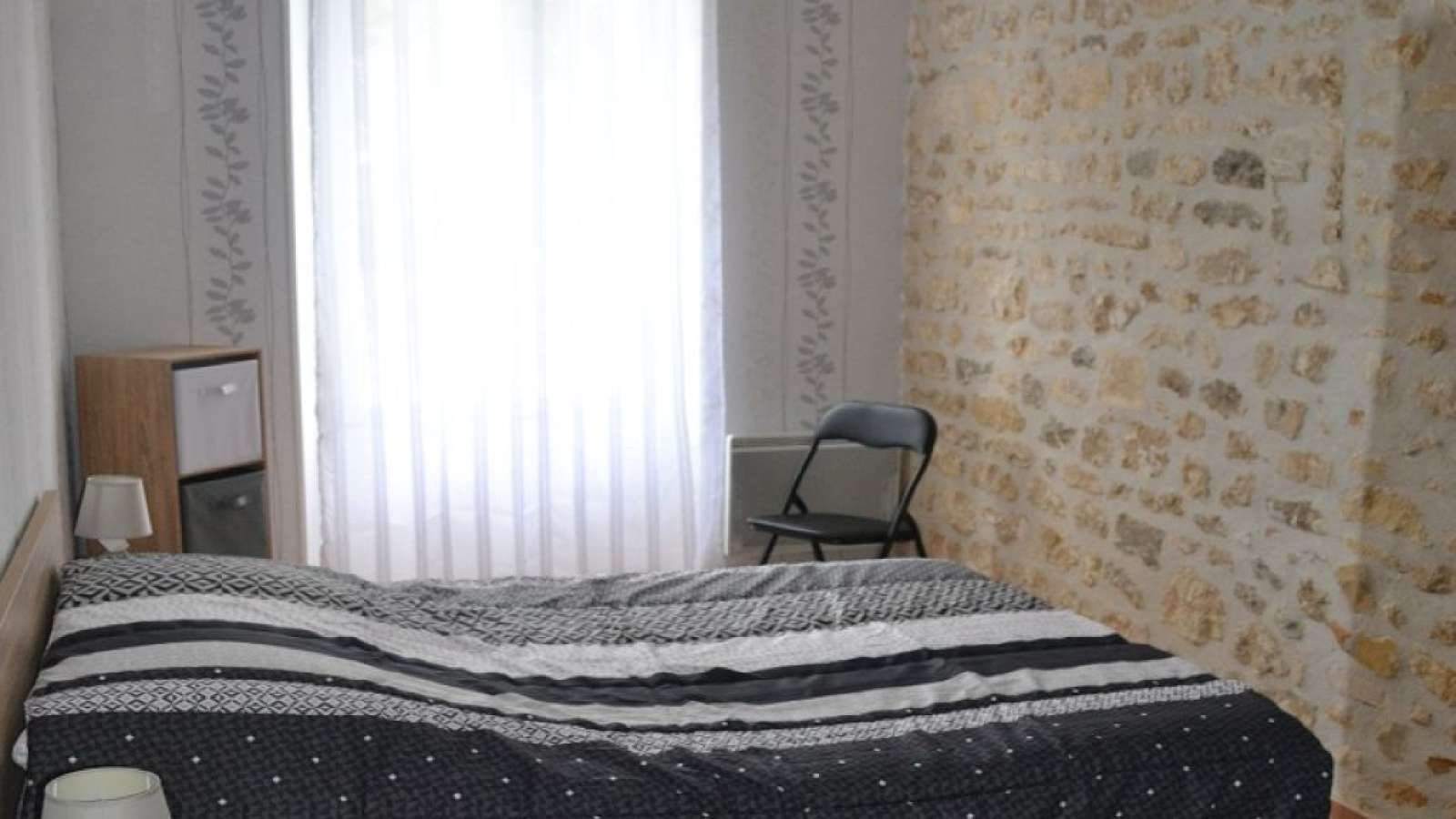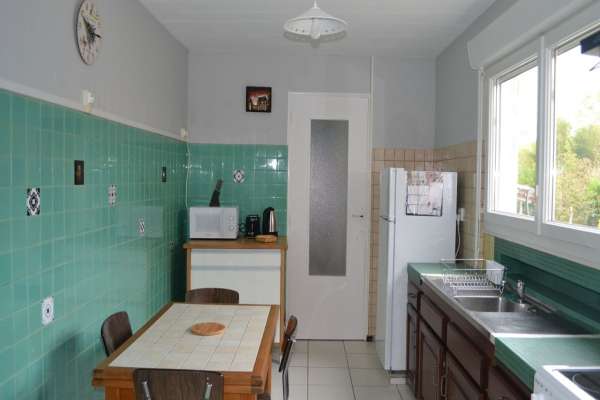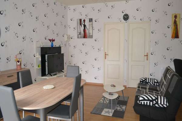 Le parking est dans une cour commune. Cuisine équipée, micro-ondes, gazinière vitrocéramique + four, hotte, grille-pain, bouilloire, cafetière, séjour + TV, clic-clac. 2 chambres avec 2 lits de 140