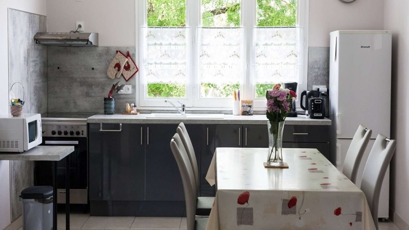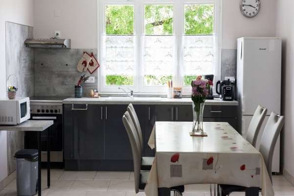 Calme et nature à 1 km du centre ville de Jonzac Appartement avec escalier d'accès, situé à 2,5 km des Thermes. Situé à 1,5km du centre aqualudique des "Antilles de Jonzac" , comprenant un grand espace cuisine/séjour, et d'une chambre séparée. À l'extérieur, parking, barbecue et jardin commun avec 3 autres appartements.