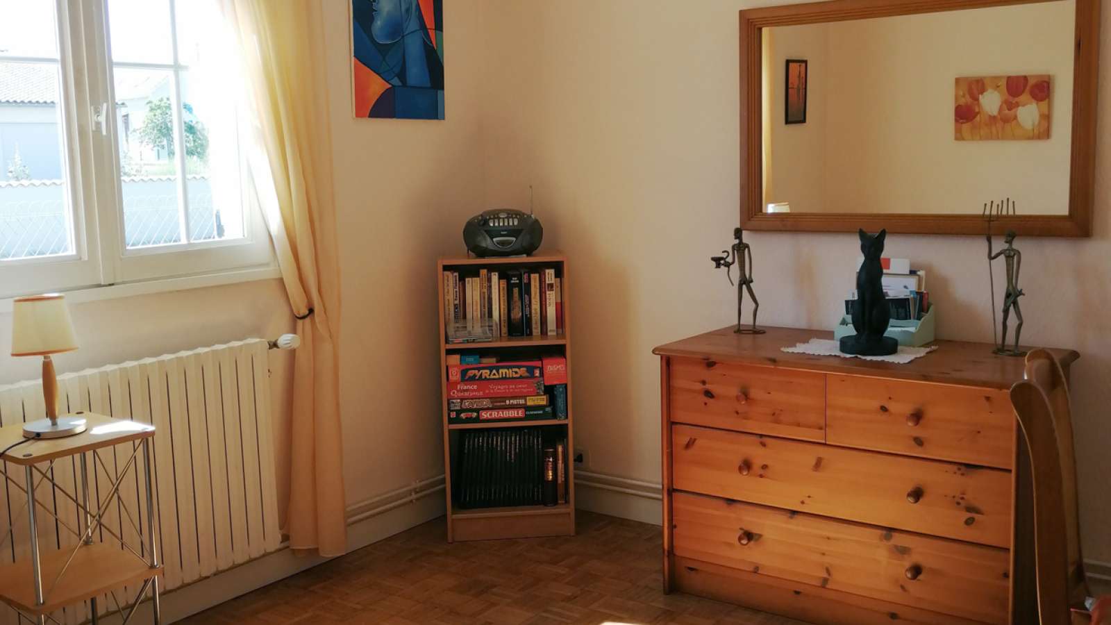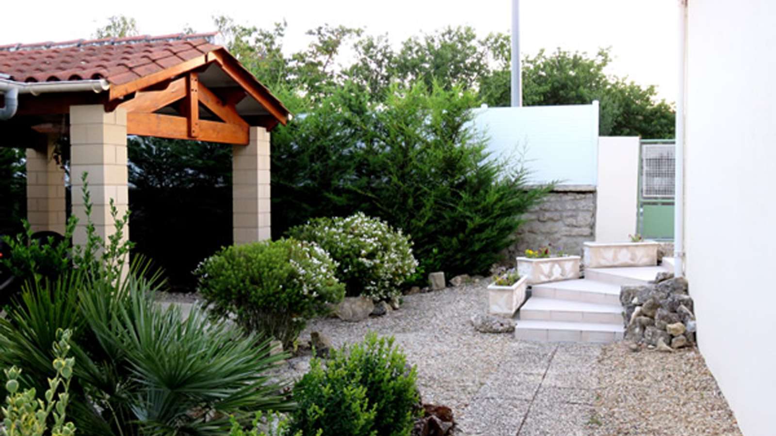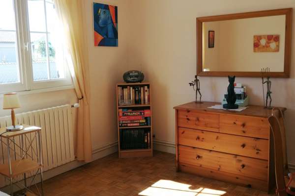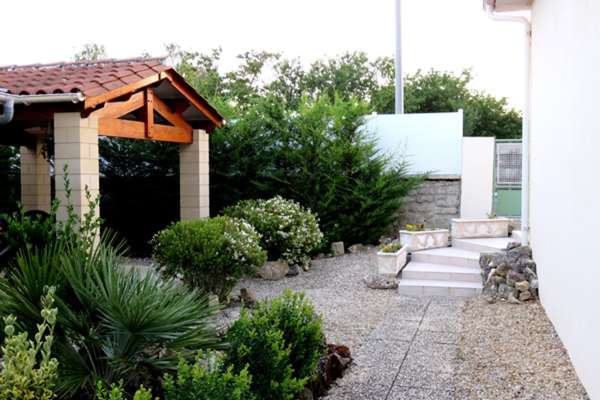 Confortable et chaleureuse maison de standing, de plain-pied, décorée avec soin, dans jardin fleuri et clos, située à 300m du centre-ville, à 500m des Thermes et de la base de loisirs et à 700m du centre aqualudique des "Antilles" de Jonzac. Maison confortable comprenant une cuisine entièrement aménagée avec tout l’électroménager nécessaire; un séjour lumineux avec canapé convertible, télévision, lecteur DVD... Deux chambres indépendantes : l'une avec un lit de 140, l'autre avec un lit de 90 et bureau. Accès Wifi gratuit. À l'extérieur, jardin fleuri fermé avec abri de jardin, mobilier, transats et barbecue. Emplacement pour la voiture. Animaux acceptés.