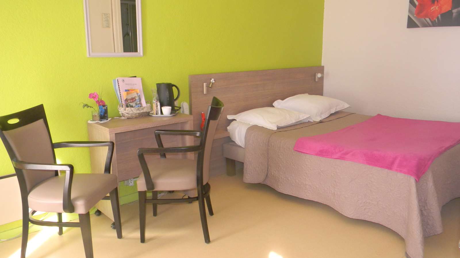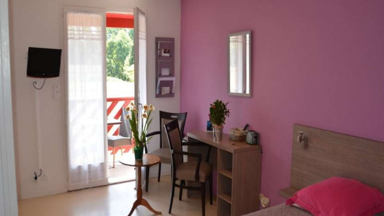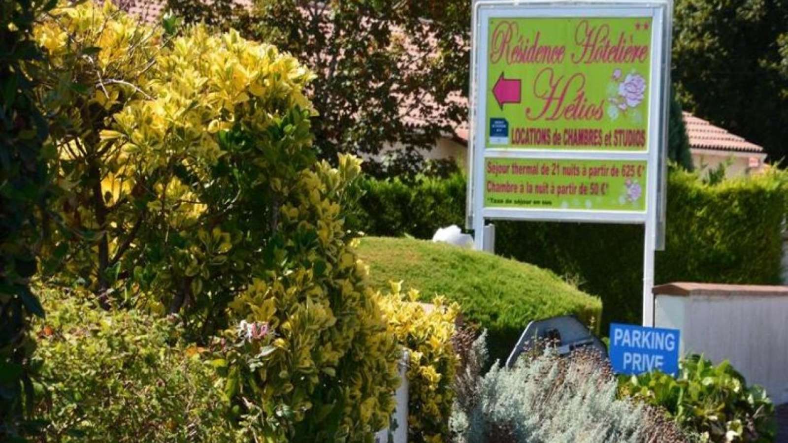 Résidence proposant des studios neufs en rez de chaussée, des chambres avec services hôteliers ou des studios à l'étage, très calme et conviviale proche des thermes (1,9km). Stéphane et Sandrine vous accueillent personnellement et chaleureusement. La location comprend un studio avec un lit de 140 ou deux lits de 90 et une cuisine équipée séparée. Dans le cas d'une location de chambre simple, la cuisine n'est pas disponible. Le petit déjeuner peut être pris en salle sur réservation préalable. Une place de parking est réservé à chaque logement. La résidence met à disposition de tous les locataires : Wifi, une salle de loisirs, un boulodrome, une laverie, une bibliothèque.