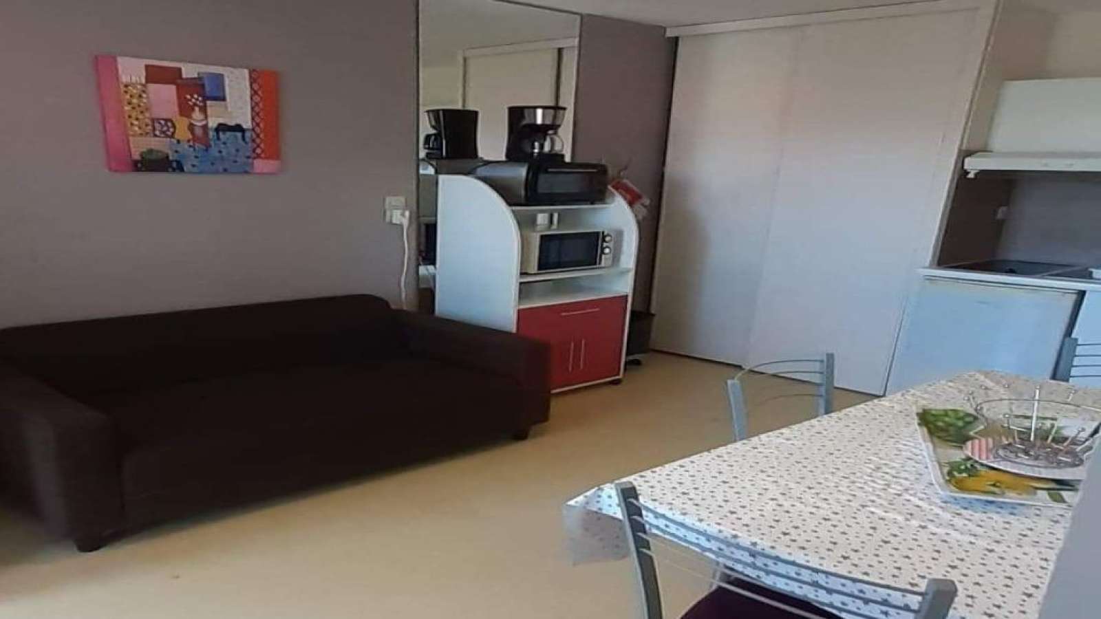 La location comprend un studio avec un lit de 140 ou deux lits de 90 et une cuisine équipée séparée. Dans le cas d'une location de chambre simple, la cuisine n'est pas disponible.