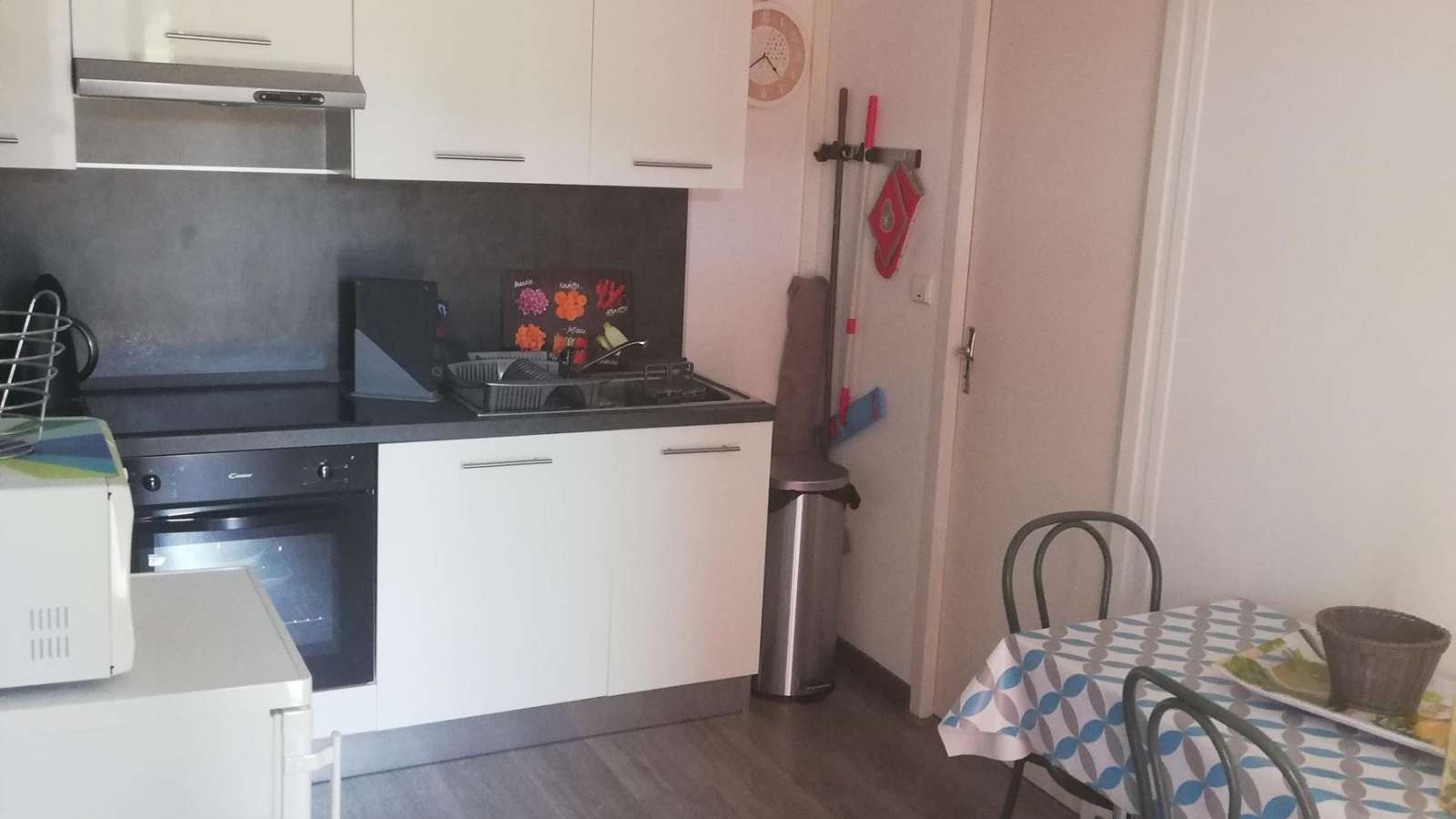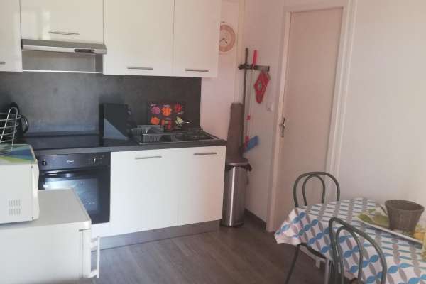 La location comprend une chambre avec un lit de 140 ou deux lits de 90 et une cuisine équipée séparée.