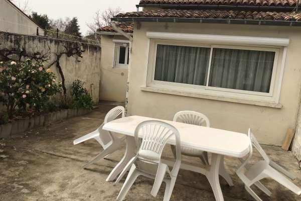 Maison au rez-de-chaussée avec mezzanine située à 300m du centre-ville, à 500m des Thermes et à 700m à pied du centre aqualudique des "Antilles de Jonzac". Maison comprenant un coin cuisine équipé avec entre autre un micro-ondes, un four, une hotte, un salon avec télévision, table, chaises, un canapé, une chambre avec un lit de 140, sur la mezzanine un lit 140. À l'extérieur, une cour fermée, un garage.