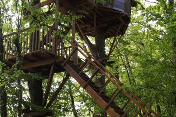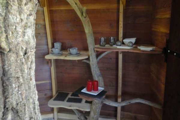 Suspendue à un chêne à 10 mètres de haut, accessible par un escalier et un petit pont de singe, cette cabane en séquoia séduira les plus aventuriers. Le tronc de l'arbre traverse la cabane offrant une immersion totale dans le chêne qui vous abrite. Voir sans être vu, tel est le sentiment qu'on éprouve depuis la terrasse. Elle est accessible aux enfants à partir de 15 ans. La cabane Maya est équipée de toilettes sèches mais votre clef vous donne accès à une salle d'eau privative où vous pourrez laisser vos affaires de toilettes. Le petit déjeuner pour deux personnes est compris. Votre panier sera accroché au bout de la corde à l'heure de votre choix et vous n'aurez plus qu'à le hisser jusqu'à vous grâce à la petite poulie. Vous y trouverez à l'intérieur (par personne) : du café, du thé ou du chocolat, un jus de fruits, un yaourt BIO, une demie-baguette, du beurre, de la confiture maison et un fruit.