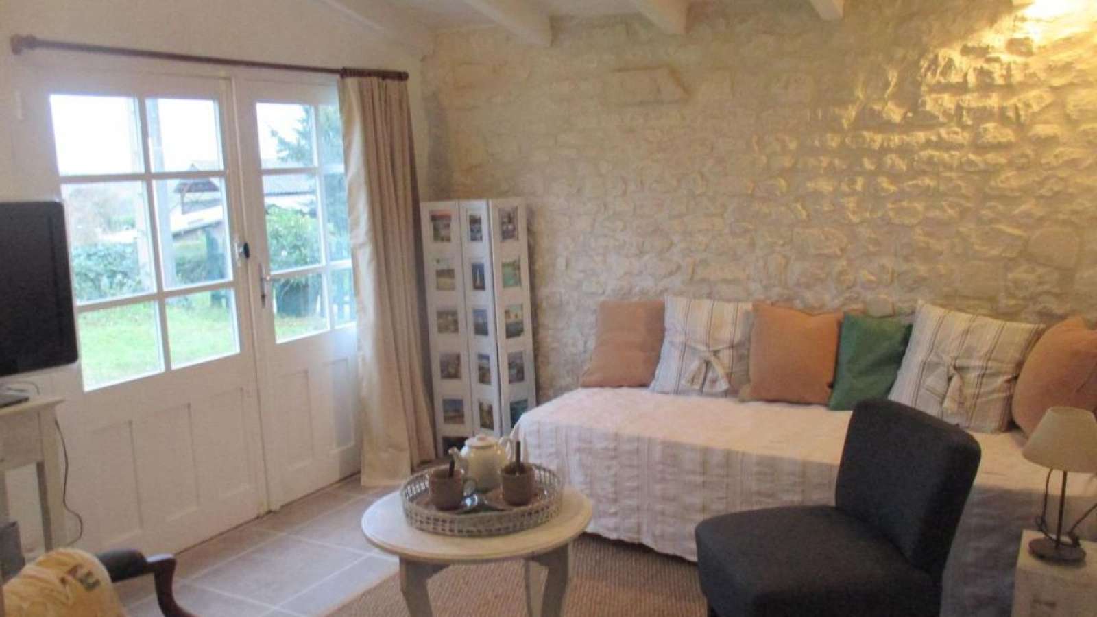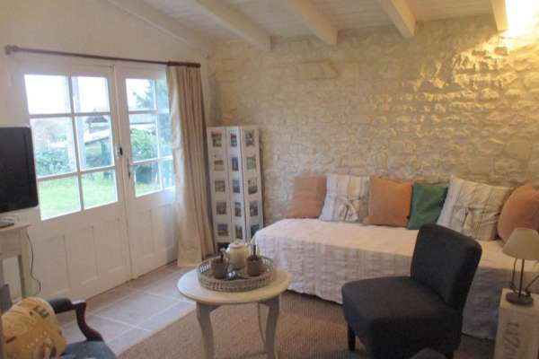 Dans un petit village très calme, une maison de 1800, rénovée mais gardant son authenticité et son histoire. Comprenant une cuisine, une chambre double, un salon avec un lit simple si besoin, une salle d'eau. Patio couvert avec salon de jardin et transats. Vaste terrain avec jardin privatif fleuri et aromatique. Au milieu des vignes, sur le circuit des églises romanes, proche de Pons (cité médiévale), Cognac (maisons de négoces, château François 1er), Jonzac (station thermale et aquatique), Saintes (Art et Histoire), Royan (plages et architecture des années 50), Rochefort et L'Hermione. À 1h15 de Bordeaux et La-Rochelle. Des livres et un classeur vous informent sur la vie locale, les visites possibles, les animations (Eurochestries, festival de blues, concerts, marchés nocturnes et les bonnes adresses des produits locaux de qualité). Un cadeau de bienvenue vous attend et un apéritif convivial a lieu durant le séjour.