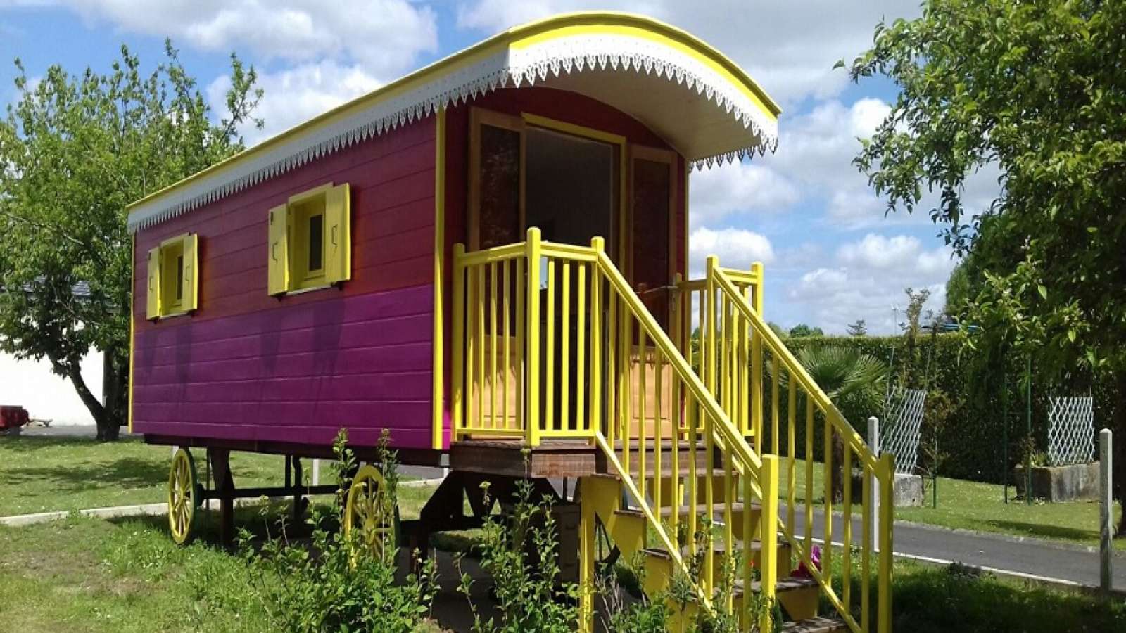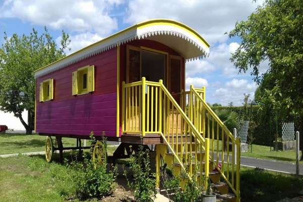 Roulotte grand confort (climatisation, meuble ancien...), avec décoration raffinée située tout proche de la Seugne. A deux pas de la nature et du centre ville, dans un quartier calme avec parking privé et portail sécurisé. Cinq marches pour accéder à la roulotte. Possibilité d'installer une toile de tente à proximité de la roulotte.