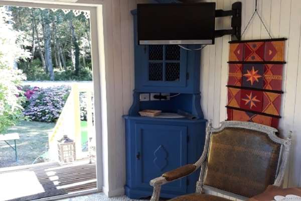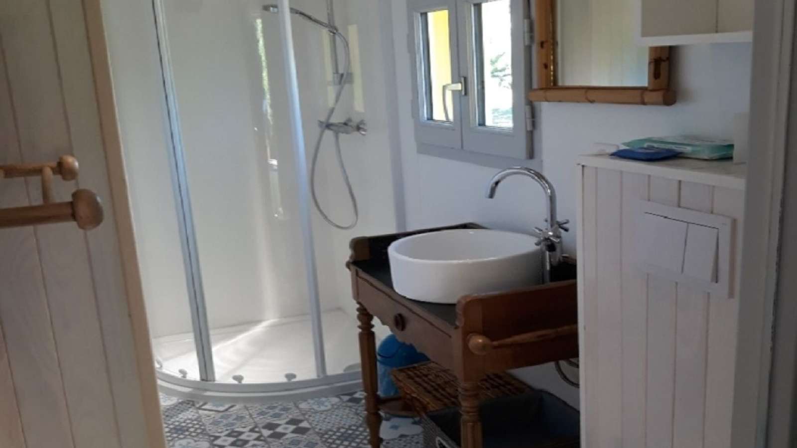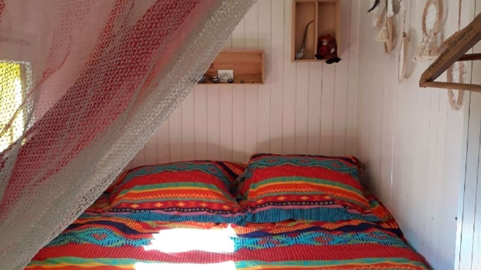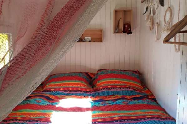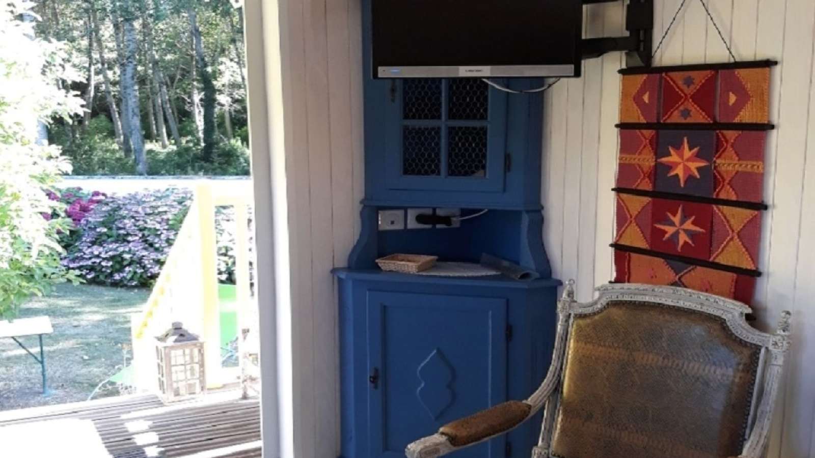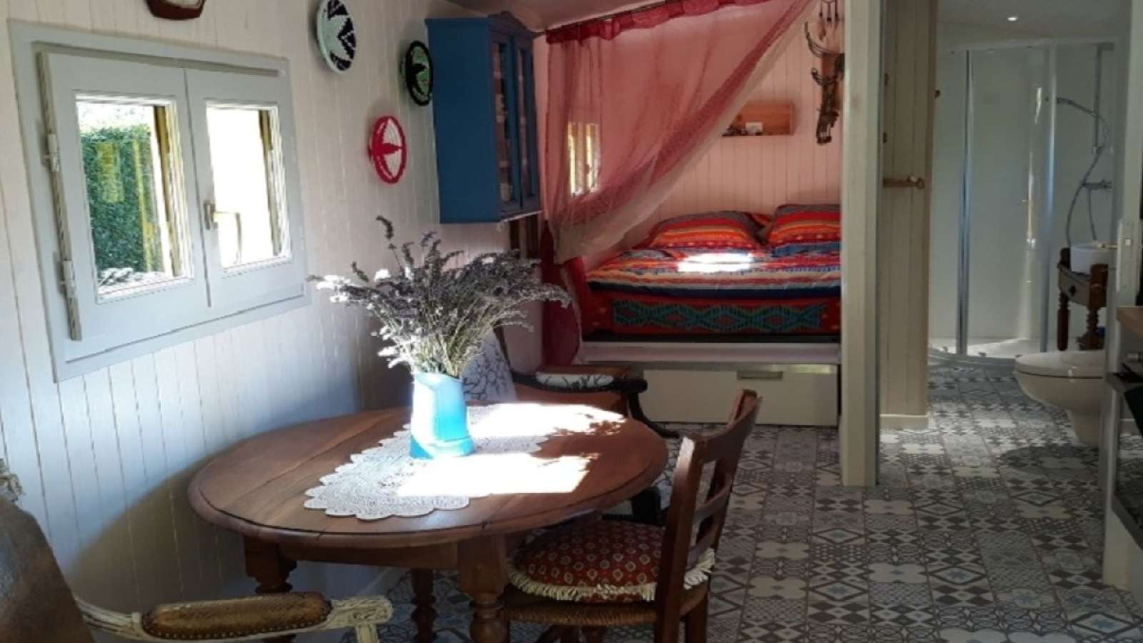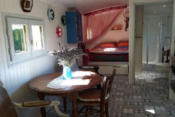 Possibilité d'installer une toile de tente à proximité de la roulotte.