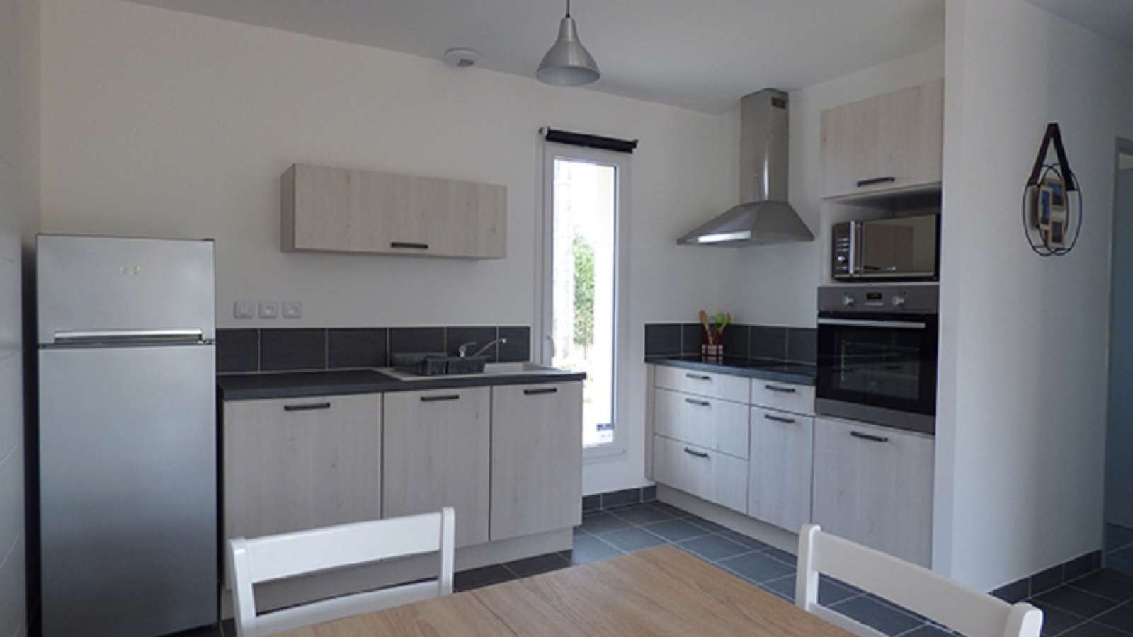 Appartement de plain-pied construit en 2018 à proximité de la station thermale et du centre-ville. Logement tout confort moderne avec parking privatif et terrasse. Machine à laver, aspirateur, barbecue, petit électroménager en commun à deux logements. Animaux de petite taille admis.