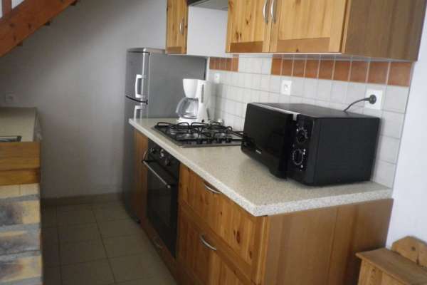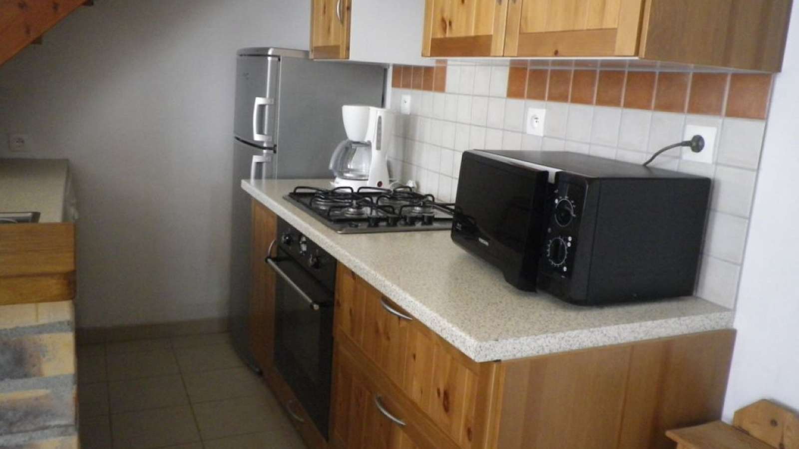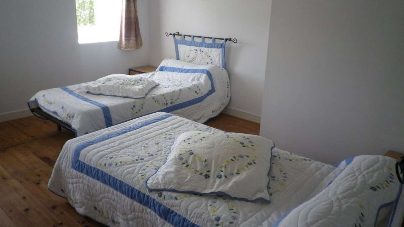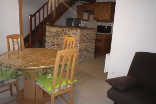 La pièce de vie, salle d'eau et sanitaires se situent au rez-de-chaussée, les chambres sont à l'étage.