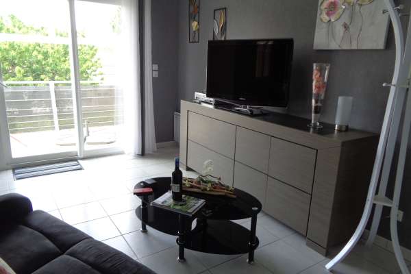 Appartement neuf très lumineux de 57m2 dont 16m2 de balcon, terrasse orientée sud ouest dans une co propriété très calme avec parking privatif. Situé à 400m du centre ville, 1.3km des Thermes, 2km du casino, des Antilles et des zones commerciales. Wifi gratuit. Navette minibus à 150m de l'appartement. A 100m de la Poste - A 200m d'une boulangerie / pâtisserie/restaurant
