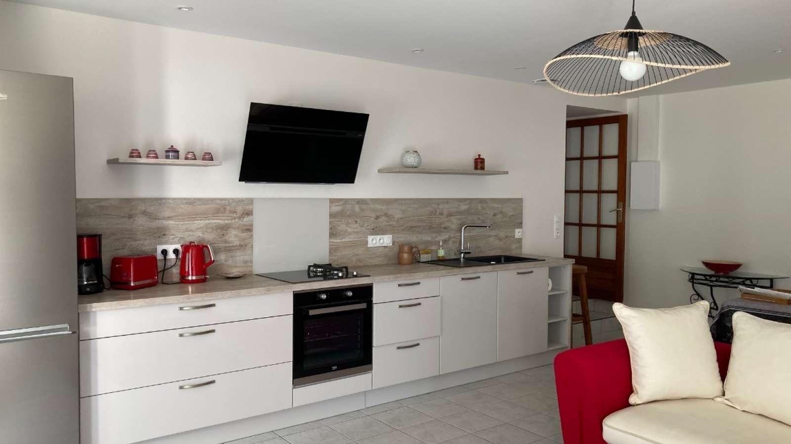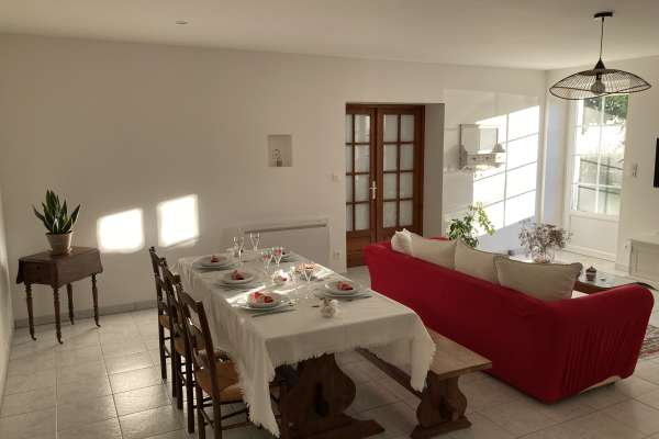 Refait à neuf en 2022, cette longère charentaise donne sur une très longue terrasse ancienne et un grand jardin arboré et clôturé. Idéal pour des vacances en famille au cœur du sud Charente-Martime. Spacieuse location composée de 3 pièces principales. L'entrée se situe par le jardin lui-même et la voiture peut-être stationnée à l'intérieur de l'enceinte clôturée. A droite de la terrasse, éclairée automatiquement, une petite remise pour mettre à l'abri vos vélos ou meubles de jardin.