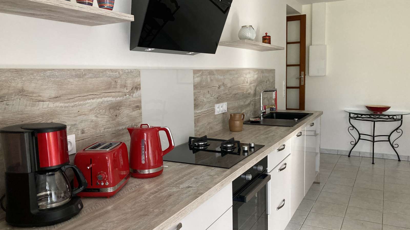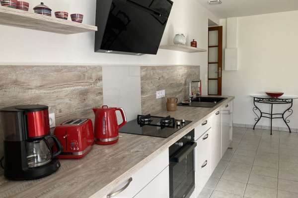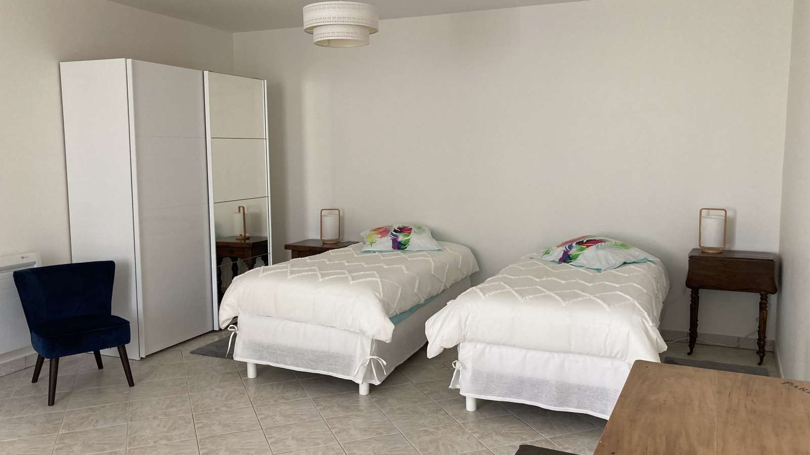 Spacieuse location composée de 3 pièces principales. L'entrée se situe par le jardin lui-même et la voiture peut-être stationnée à l'intérieur de l'enceinte clôturée. A droite de la terrasse, éclairée automatiquement, une petite remise pour mettre à l'abri vos vélos ou meubles de jardin.