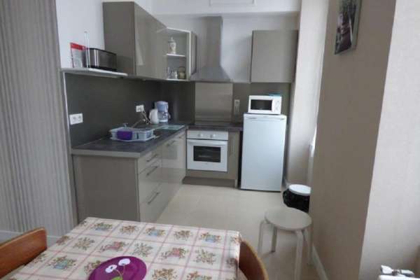 Appartement au rez-de-chaussée surélevé situé en centre-ville, à 2,5km des Thermes, à 800m Antilles de Jonzac Comprenant une cuisine équipée d'une plaque à induction, un four électrique, un réfrigérateur, un four micro-onde. Aussi une pièce à vivre avec télévision écran plat, un lit de 140. (lave-linge séchant collectif à la cave)