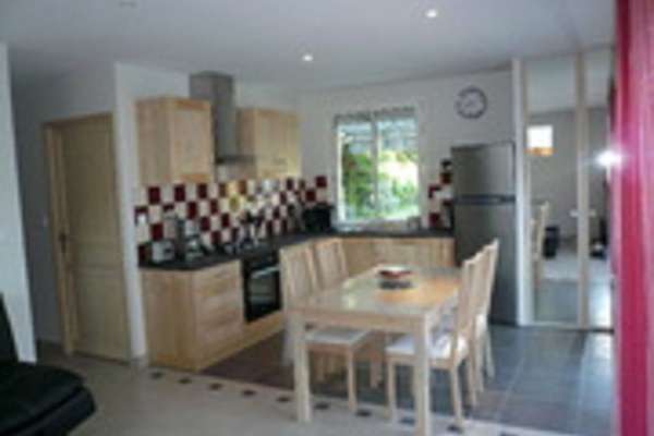Maison comprenant une cuisine équipée avec entre autres un lave-vaisselle, un four, une hotte, une cafetière, un grille-pain, un micro-ondes, un séjour avec un canapé, une télévision, un lecteur DVD, accès Wifi, deux chambres l'une avec un lit de 140, l'autre avec un lit 160.