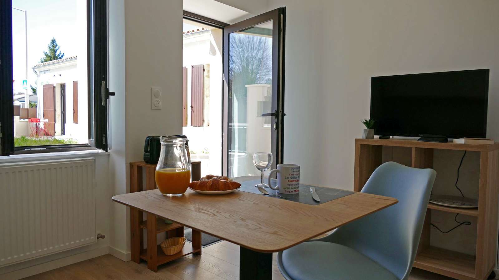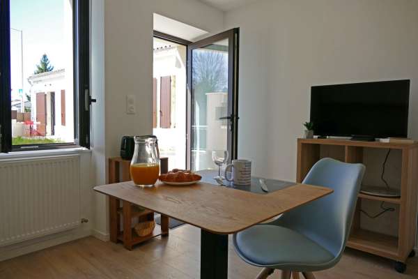 A 50 mètres de l'entrée du domaine des thermes, votre studio est accessible en rez-de-chaussée et de plain-pied. Entièrement remis à neuf fin 2020, il est parfaitement isolé. Il s'organise en trois espaces confortables et fonctionnels : Le coin repas avec une cuisine équipée "comme une grande" (cafetière, bouilloire, plaque vitrocéramique, four traditionnel et micro-onde…). Le coin nuit, où sont installés un lit de 120cm ainsi qu'un téléviseur à écran plat, vous permet un moment de détente ou de repos. Enfin, la salle d'eau, ouvrant par une porte à galandage, se compose d'un lavabo simple vasque, d'une douche dont le bac est extra-plat, et des WC. Pour votre confort, la literie, neuve, est composée d'un matelas ferme, de deux oreillers (à mémoire de forme) et d'une couette. Des placards dans chaque espace vous permettent de ranger vos effets personnels afin de vous sentir comme chez vous.