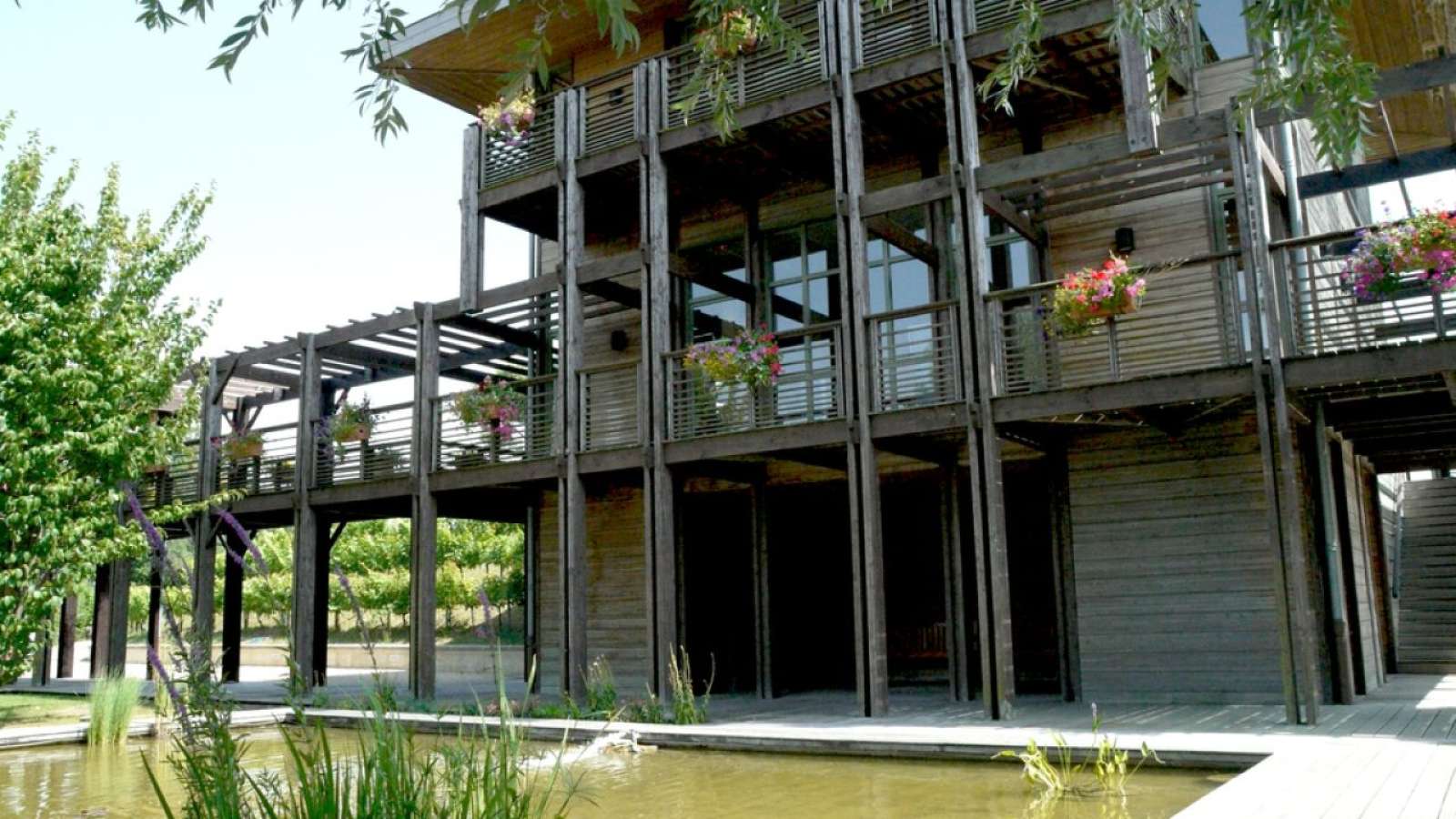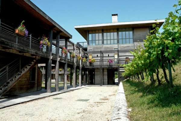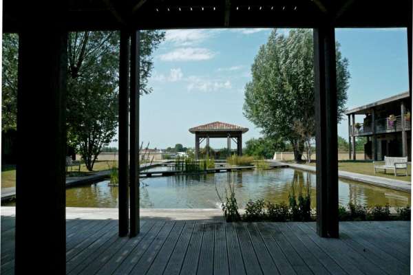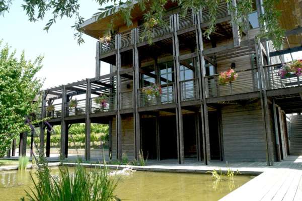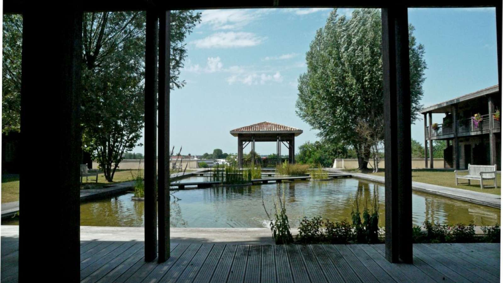À 400 mètres à pied des Thermes de Jonzac, par de petits sentiers paysagés, la Maison des Vignes, médaillée en 2007 pour son architecture remarquable, offre le confort douillet de 40 beaux appartements d’environ 35 m² avec séjour-cuisine, chambre séparée et baies vitrées sur les jardins.