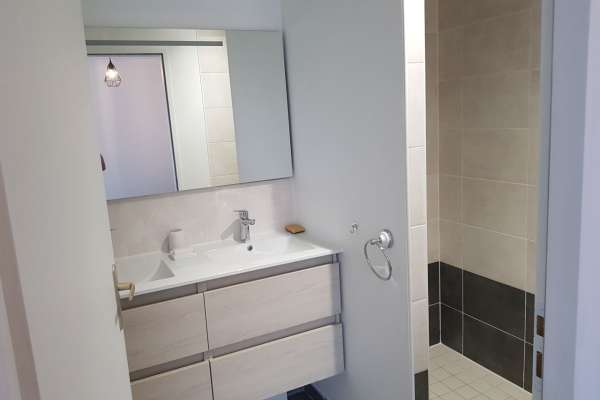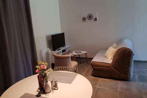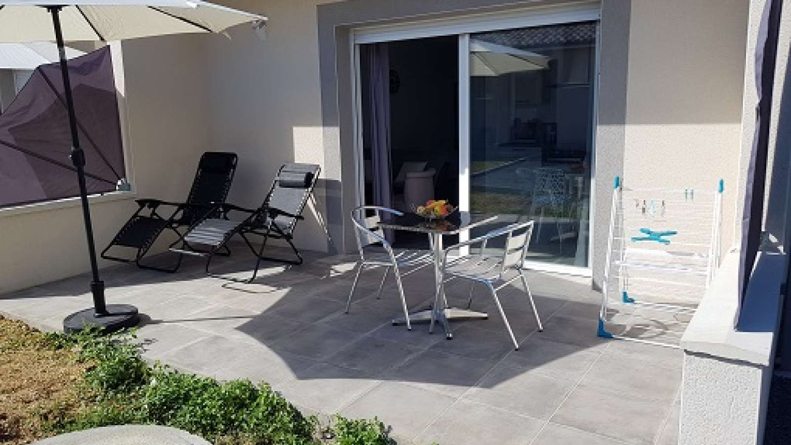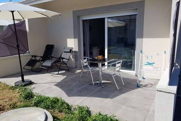 Logement neuf dans résidence tout confort (5 logements - construction 2020). L’exposition plein sud offre un appartement lumineux et chaleureux. Vous pourrez prendre vos repas ou un bain de soleil sur la terrasse privative. La cuisine aménagée est équipée de tous le matériel nécessaire à la confection de bons petits plats. Le coin repas salon est propice à votre détente. Pour plus de confort, la salle de bain dispose de 2 vasques et d’une douche à l’italienne. Les WC sont séparés.** La résidence dispose aussi d’un parking privé, d’un terrain de boules et d’un espace jardin avec barbecue. A noter : Linge fourni (lit-toilette-lits fait à l’arrivée), ménage fin de séjour, produits d’entretien, animaux petite taille, eau, électricité et wifi compris dans le tarif. Proche des commodités (gare, centre-ville, parc aquatique, casino, base de loisirs etc…) pour un séjour plus simple et divertissant. Buanderie commune avec lave-linge et sèche-linge.
