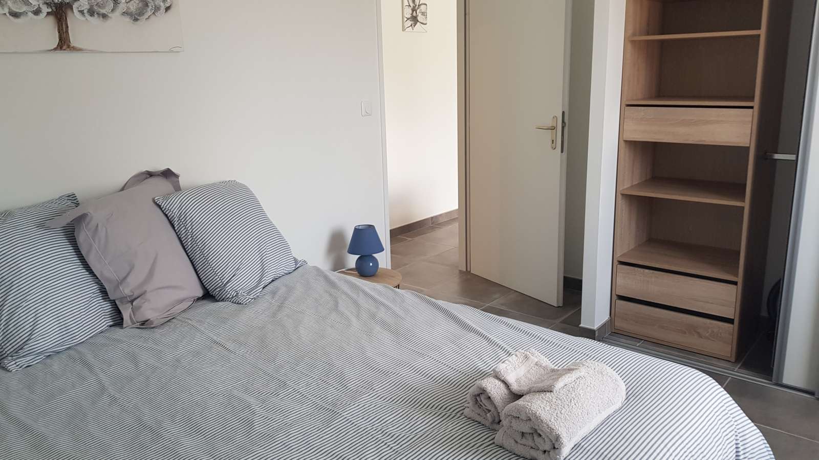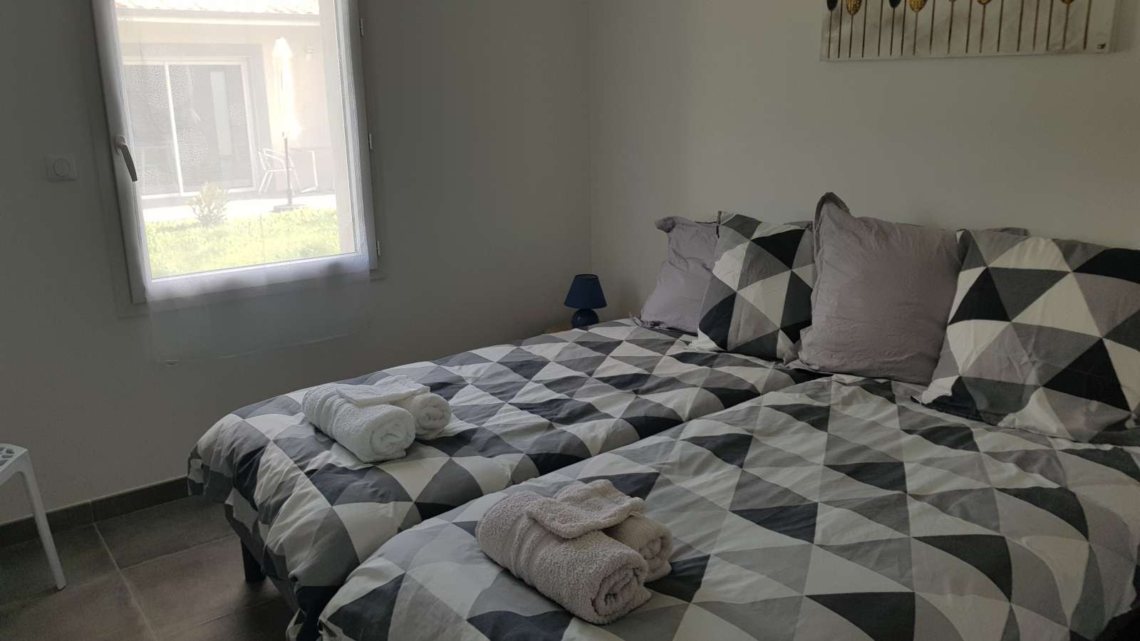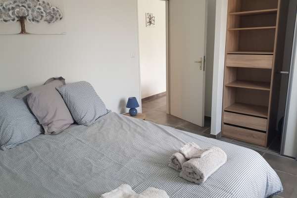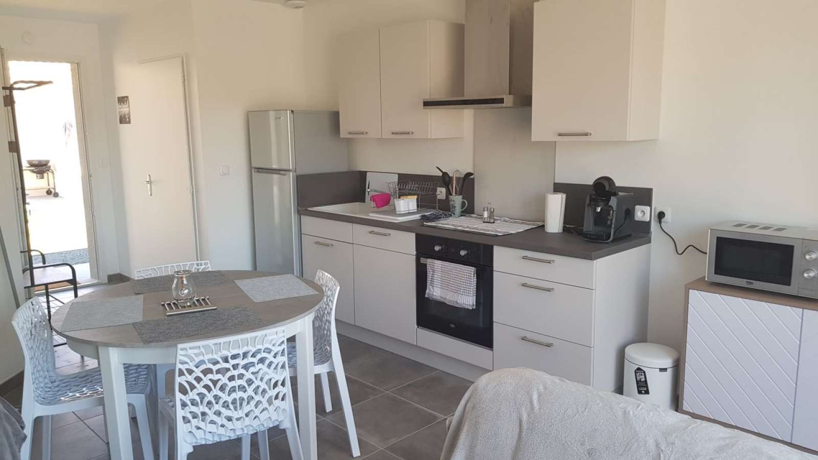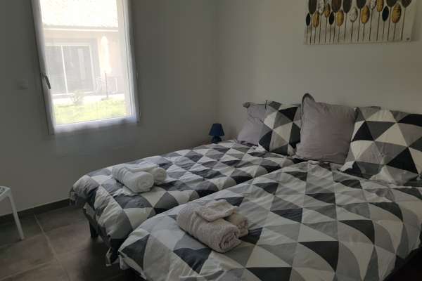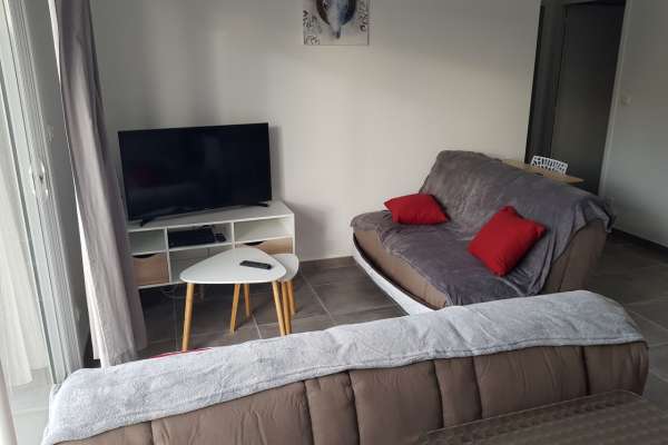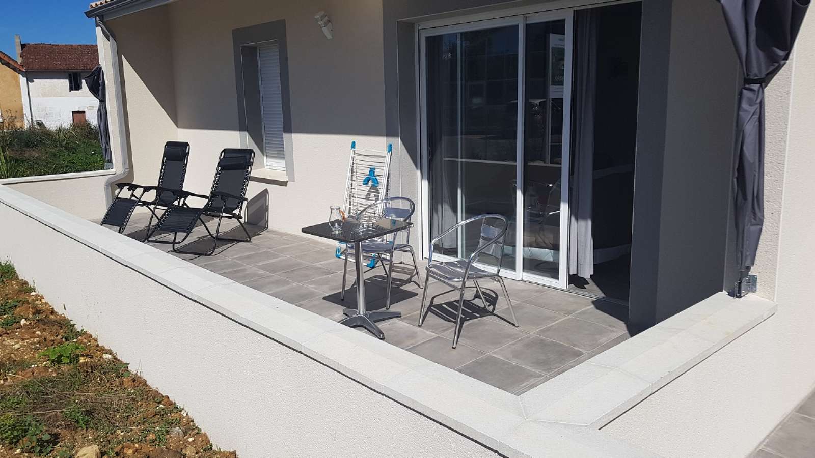 Logement neuf de 55 m2 dans résidence tout confort (5 logements - construction 2020).. L’exposition plein sud vous offre un appartement lumineux et chaleureux. Vous pourrez prendre vos repas ou un bain de soleil sur votre terrasse privative. La cuisine aménagée est équipée de tout le matériel nécessaire à la confection de vos bons petits plats. Le coin repas salon est propice à votre détente, vous pourrez y consulter gratuitement, en toute tranquillité, internet et votre messagerie grâce au WIFI, il dispose d’un canapé et d’une télé avec lecteur blu-ray. Pour plus de confort, la salle de bain dispose de 2 vasques et d’une douche à l’italienne. Les WC sont séparés.** La résidence dispose aussi d’un parking privé, d’un terrain de boules et d’un espace jardin avec barbecue. Laverie commune A noter : Linge fourni (lit-toilette-lits fait à l’arrivée), ménage fin de séjour, produits d’entretien, animaux petite taille, eau, électricité et wifi compris dans le tarif. Proche des commodités (gare, centre-ville, parc aquatique, casino, base de loisirs etc…) pour un séjour plus simple et divertissant.