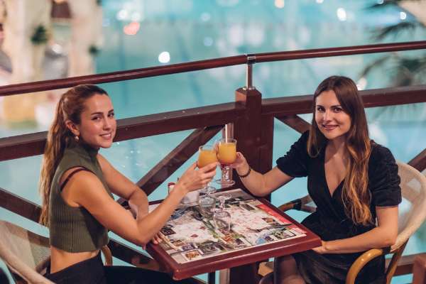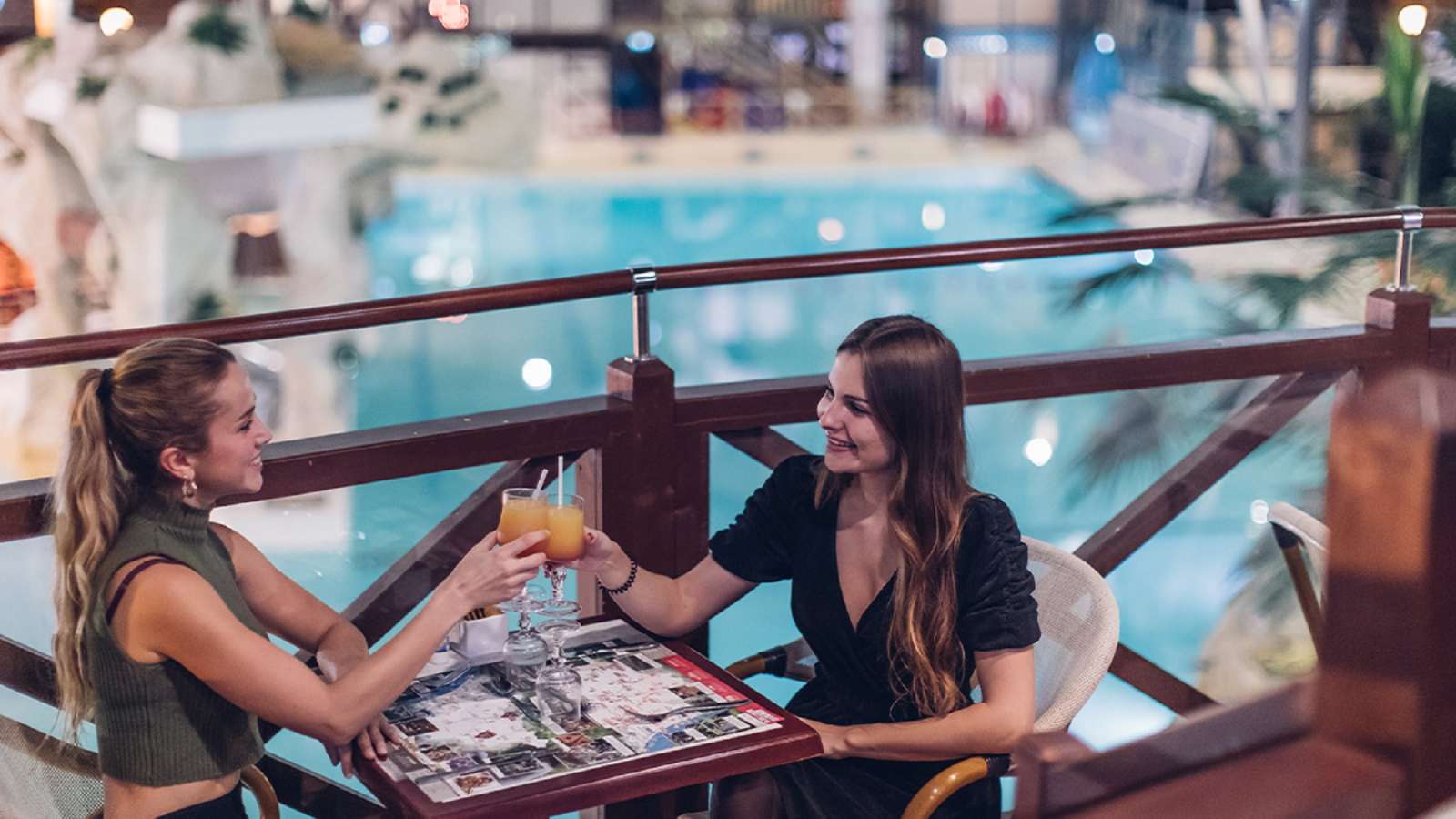 Les Antilles de Jonzac disposent de deux lieux de restauration : un restaurant avec vue panoramique et un snack dans le lagon. RESTAURANT Bienvenue au Restaurant Panoramique, où chaque midi, nous vous proposons des plats à la carte (sauf le mercredi) ainsi qu'une formule entrée/plat/dessert. Installez-vous et profitez d'une vue imprenable sur le lagon. En journée, détendez-vous sur la terrasse et laissez-vous tenter par une crêpe ou une gaufre, accompagnée d'un rafraîchissement du bar. Réservations fortement conseillées pour le service du midi. Pour garantir votre sécurité et celle de nos équipes, nous vous rappelons qu'une tenue sèche et des chaussures sont obligatoires pour accéder au restaurant entre 12h et 14h. TI'BAR Envie de grignoter ? Rendez-vous au Ti'Bar, notre snack situé au bord de la plage du lagon ! Sandwichs, beignets, glaces, confiseries et boissons vous y attendent tous les week-ends et pendant les vacances scolaires.