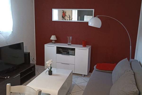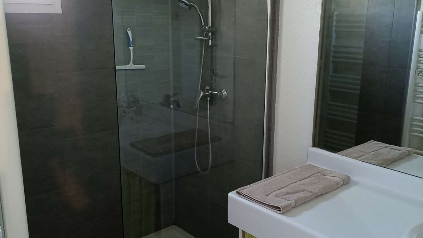 Il se compose d'une pièce de vie avec cuisine toute équipée, un espace salon avec télé et canapé. Une chambre avec un lit de 160 cm, salle d'eau avec douche à l'italienne et sèche serviette. WC séparés.