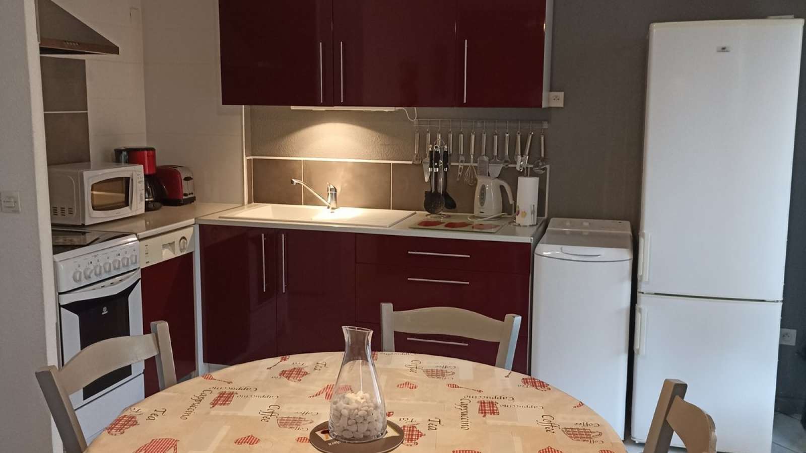 Logement situé à 1,5km des Thermes, 2km du centre-ville et 3km du centre aqualudique des "Antilles de Jonzac", en rez-de-chaussée. Logement de plain pied de 35m2, classé 3 étoiles, idéale pour cure Thermale. Il se compose d'une pièce de vie avec cuisine toute équipée, un espace salon avec télé et canapé. Une chambre avec un lit de 160 cm, salle d'eau avec douche à l'italienne et sèche serviette. WC séparés. Accès wifi. Petit jardin calme sans vis à vis avec terrasse. Parking privé