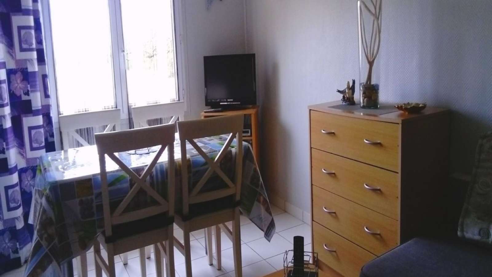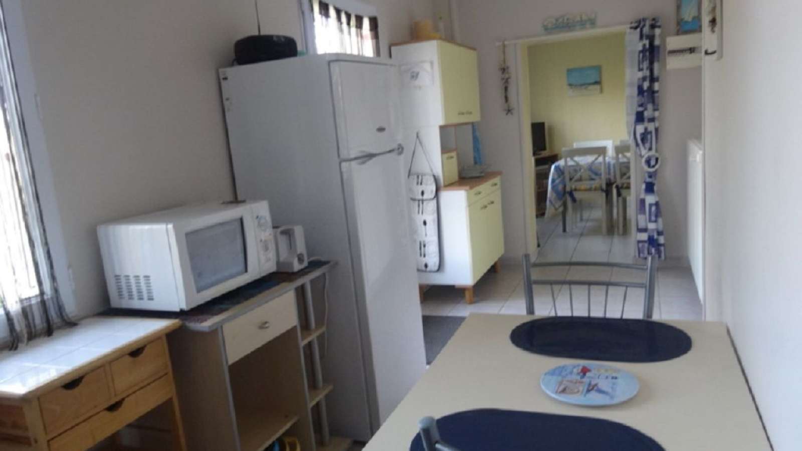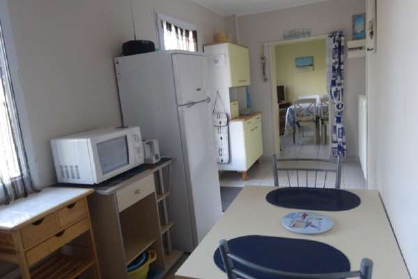 Appartement comprenant un coin cuisine équipé d' un micro-ondes, une cuisinière vitro-céramique, vaisselle complète, un séjour avec TV écran plat, un canapé convertible, une chambre avec lit de 140. Lave-linge commun aux trois logements.