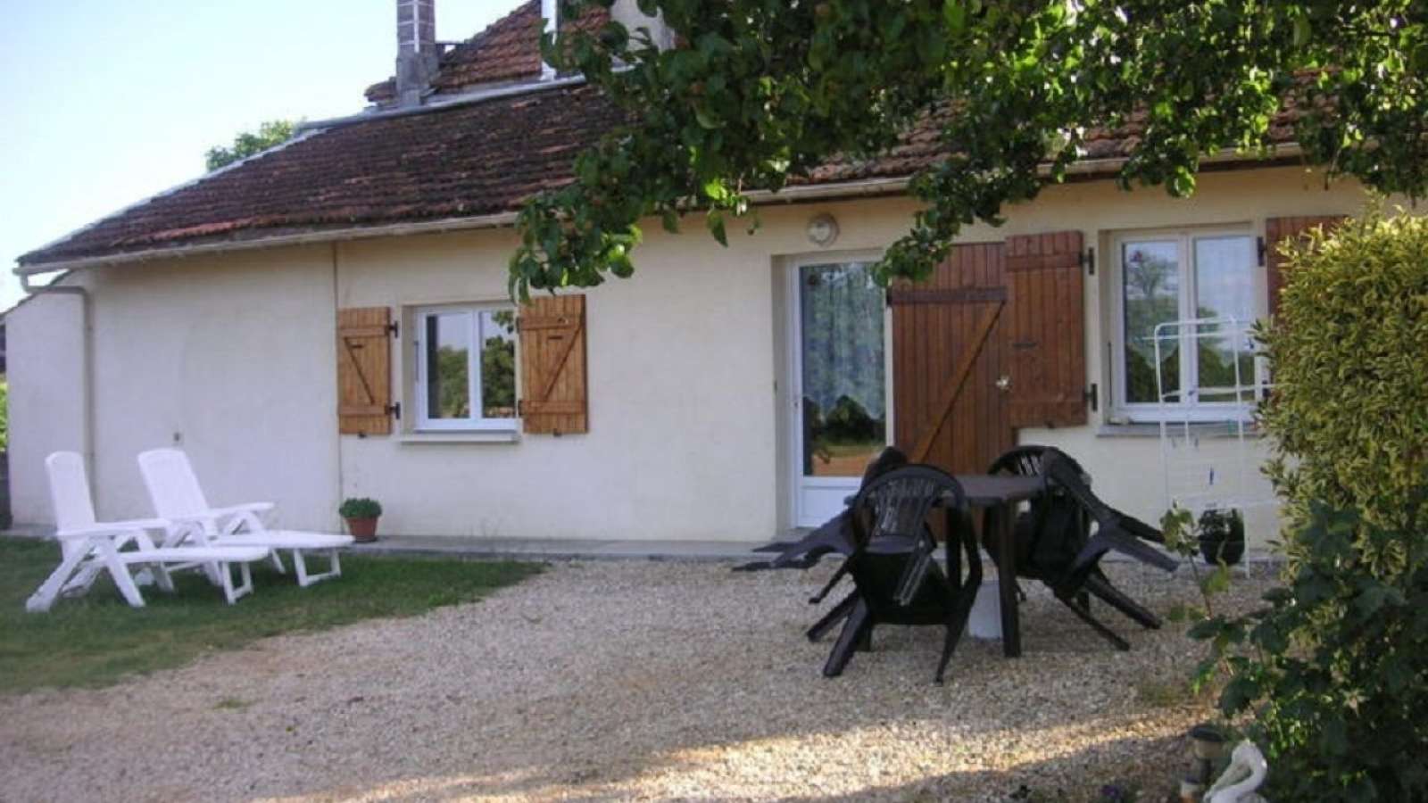Espace jardin et cour avec vue sur champ, parking privé non clos.