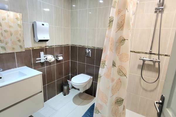 Appartement de plain pied neuf meublé tout confort à 900m de la station thermale et proximité immédiate de la gare de Jonzac. PASSAGE NAVETTE Lit en 160 électrique ou 2 fois 80. four, micro onde, lave vaisselle, lave linge, frigo, congélateur, tv, douche a l italienne... Wifi avec fibre. Aucune marche dans le logement. Une borne de recharge électrique publique est disponible à moins de 50 m.