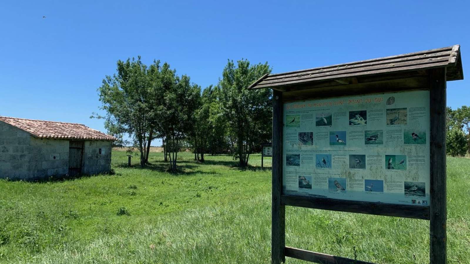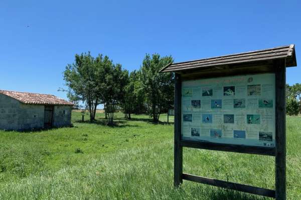À la Grange des Marais, site de découverte nature avec quatre panneaux informatifs sur la faune et la flore des Marais de l'Estuaire de la Gironde.