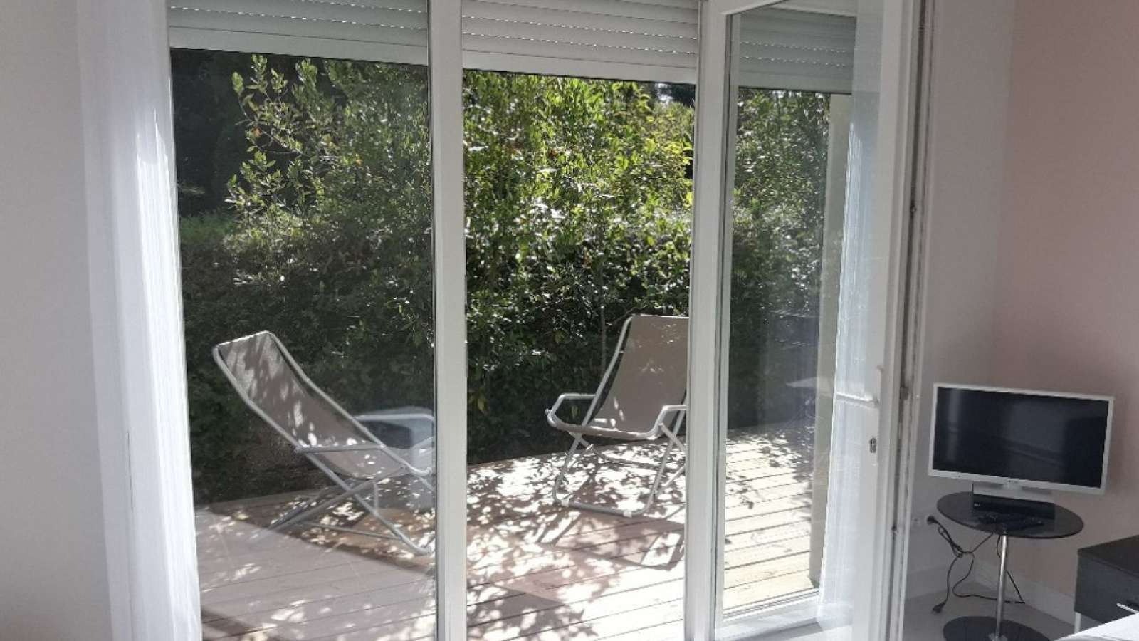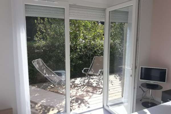Studio meublé 4* de 25m2 climatisé, au calme, plain pied, dans un jardin arboré, avec terrasse privative et à 1300 mètres des thermes. Parking sécurisé.