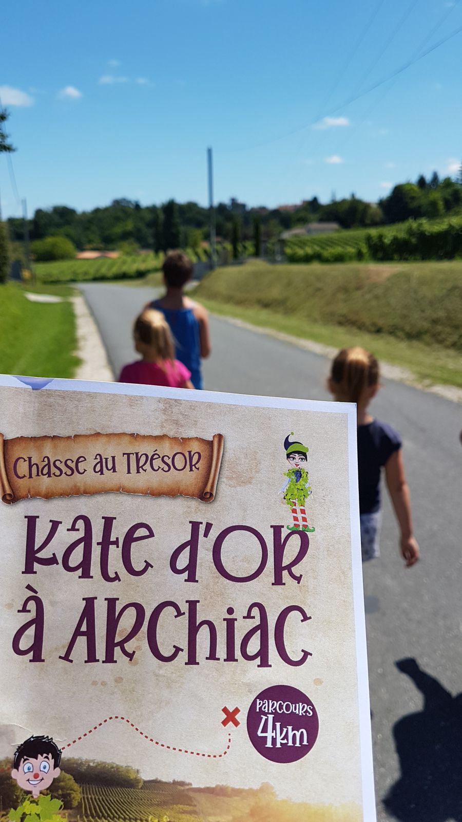 Au départ de la Maison de la Vigne et des Saveurs, un incontournable pour la découverte du vignoble de Cognac, une chasse au trésor est proposée. L’équipe de la Maison de la Vigne vous a concocté un jeu à faire en famille ou entre amis. Intitulée “Kate d’or à Archiac”, cette chasse au trésor est à retirer à l’accueil. Le livret en mains et c’est parti pour 2h30 à 3h00 sur l’un des deux parcours dans la commune (4,5 km ou 8 km). Des questions historiques, de l’observation, du déchiffrage vous emmèneront jusqu’au un vrai trésor. L’erreur n’est pas permise afin d’avoir le bonheur d’ouvrir la malle secrètement gardée…