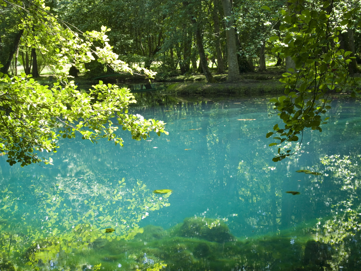 Un vénérable frêne tricentenaire marque l’allée qui conduit au cœur du sous-bois, aux mystérieuses « Fontaines Bleues » sources naturelles dont les eaux profondes, calmes et sereines présentent une coloration bleu foncé, étrange et magique.