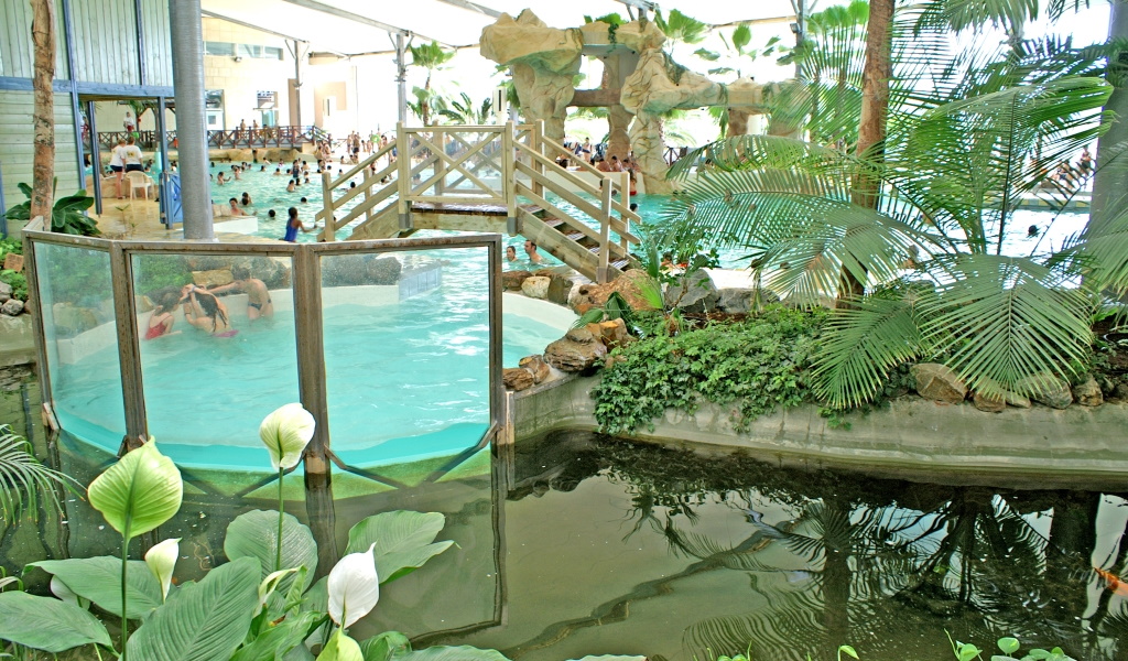 Cette balade débutera au centre aquatique Les Antilles de Jonzac. Nous évoquerons bien sûr sa création en 2002 avec son architecture spécifique (10 000 m2 de vélum) qui abrite lagon, espace forme, jardin tropical.